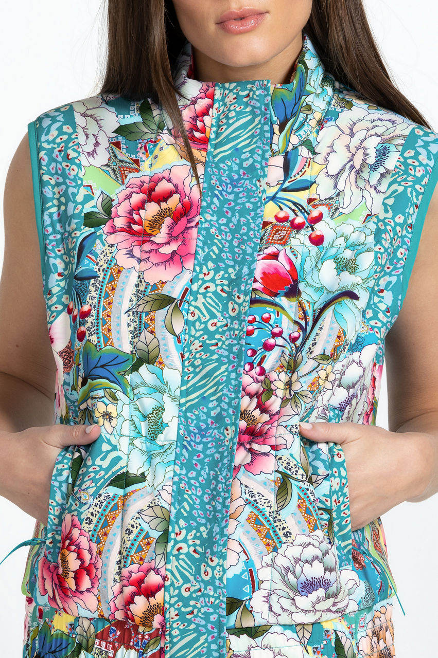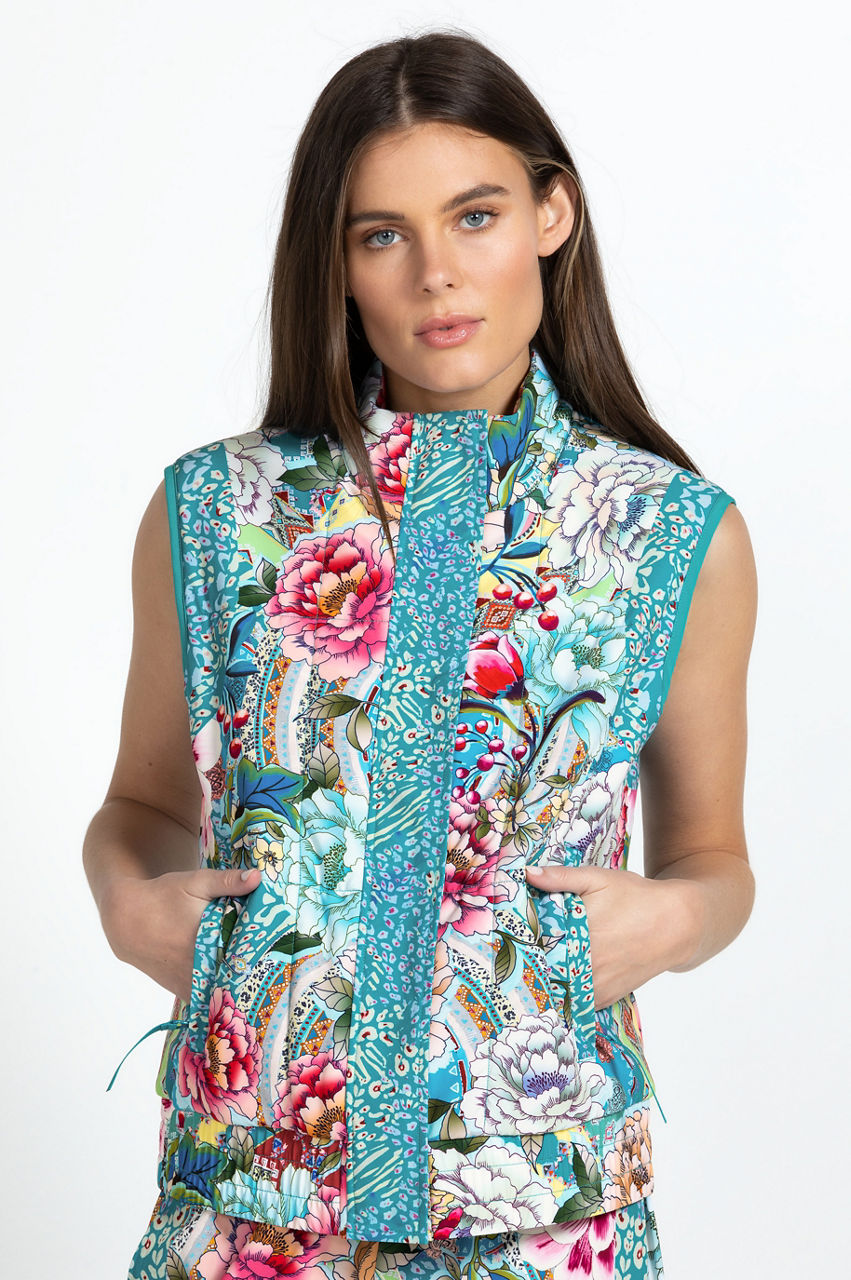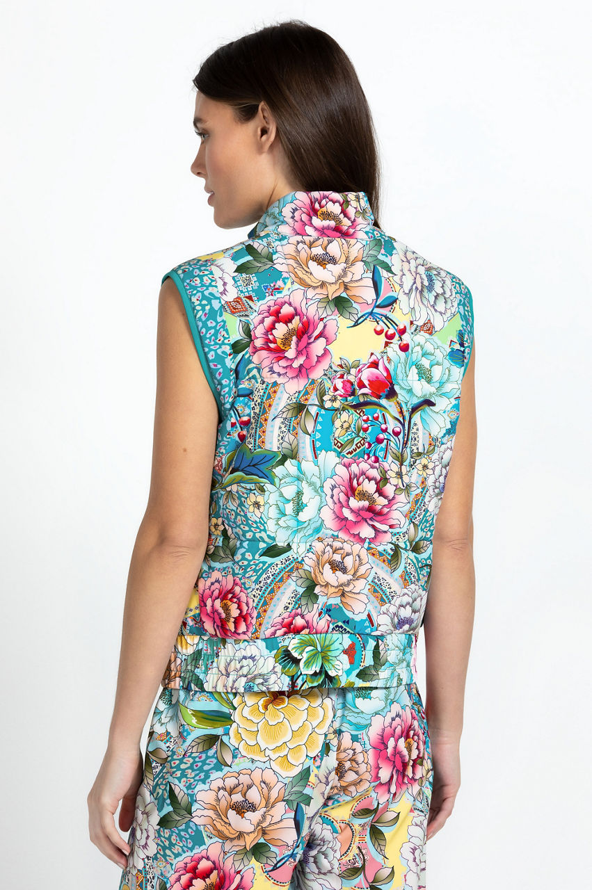 Colorful and lively, the Prisma Quilted Vest is an elegant take on a classic '90s outerwear silhouette. Perfect for everything from workouts to errands, this quilted vest features a high neck, a concealed front closure, a charming floral pattern, and an elastic drawstring waist to trap in the heat. Layer over a pullover or style solo with joggers on your next power walk with friends.