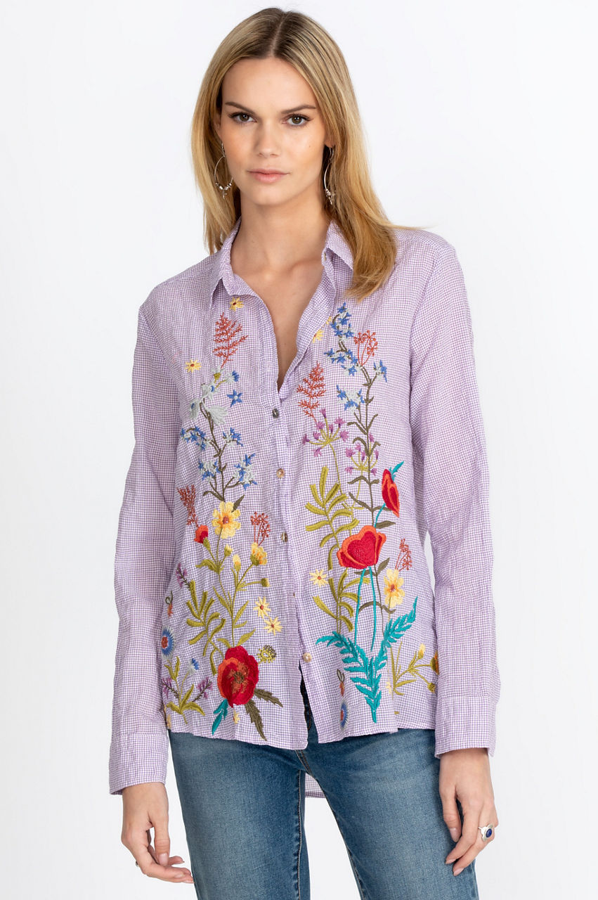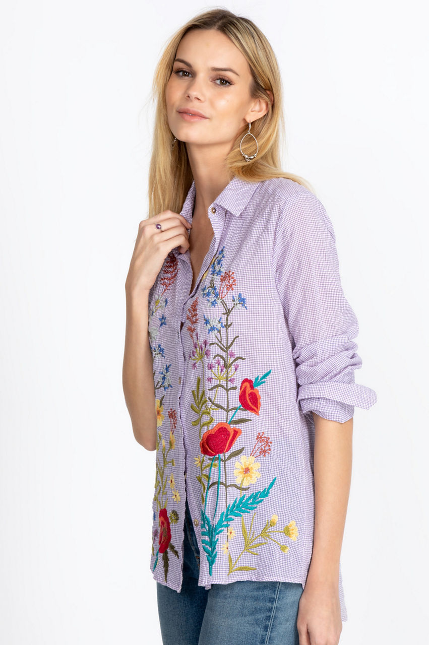 Show off your lavish style with our Provence Button Down Shirt. This immaculate piece takes fashion to the next level thanks to its stunning embroidery, splendid design and ravishing silhouette. Whether you re heading to a coffee date or attending a garden party, this piece is sure to be your new favorite. Pair it with some skinny jeans and your favorite boho booties.