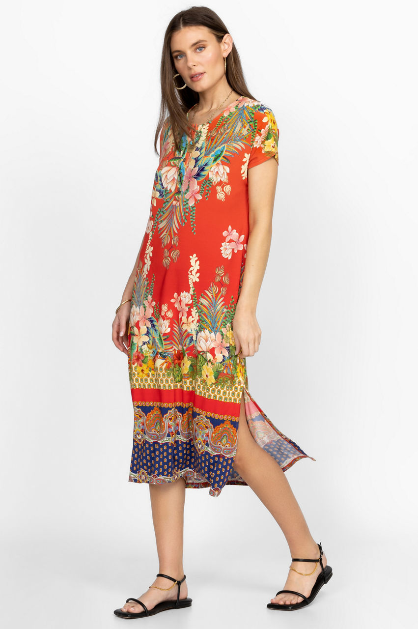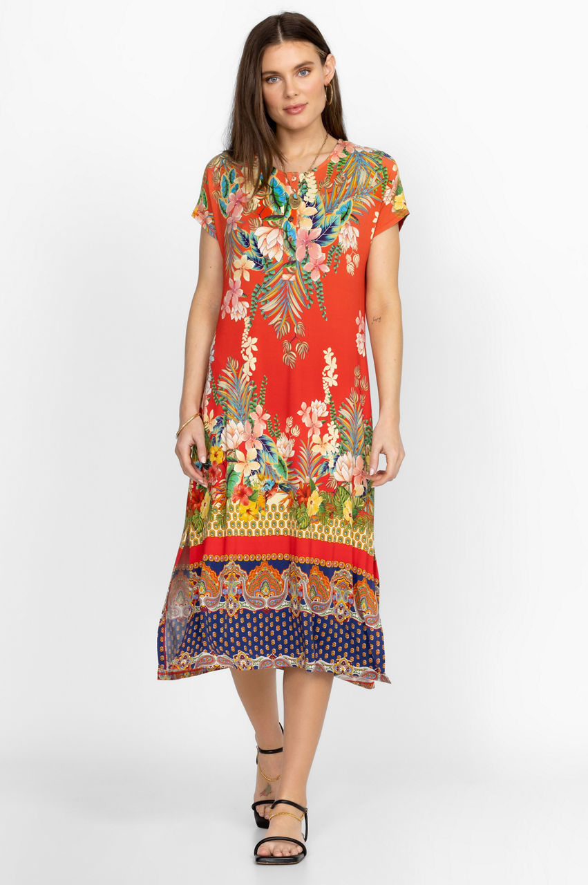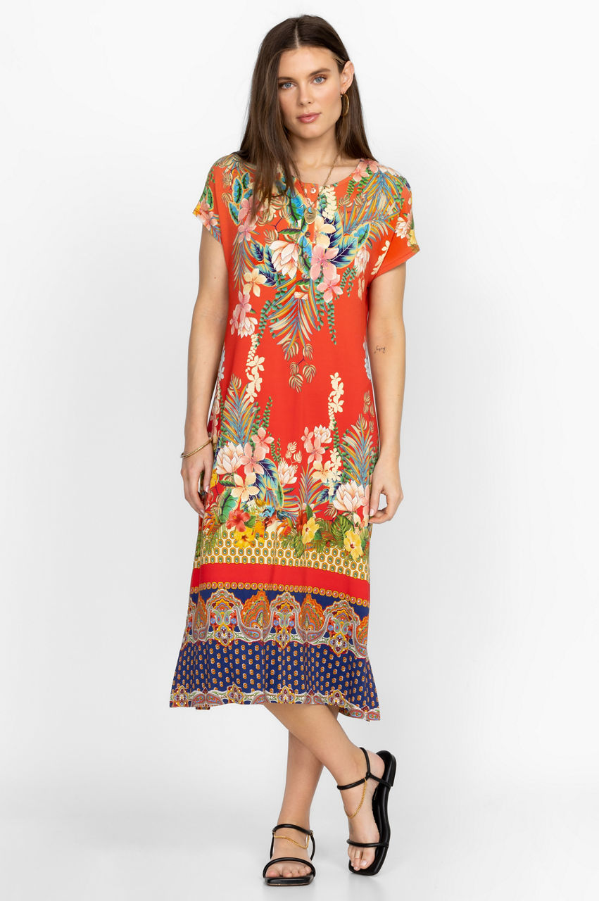 A vivid symphony of color and print, the Rapsodia Maxi Henley Dress reworks an easy silhouette with tropical floral motifs and detailed repeated patterns. Perfect for sun-filled afternoons and beach vacations, this striking dress falls to a maxi length and features a round neck, a front button placket, and short sleeves. Wear with slides or dress up with sandals.