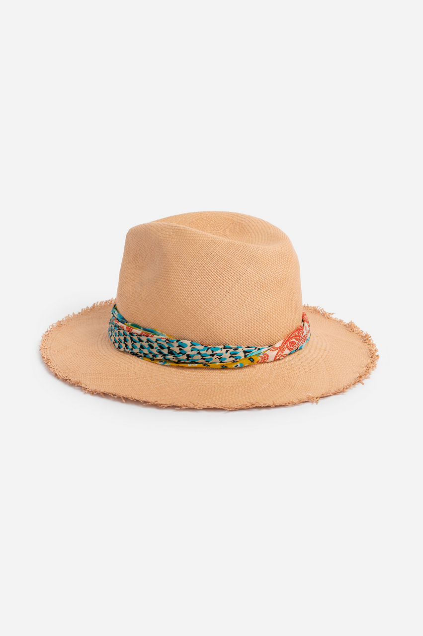 Woven from durable raffia, the Ravenne Fringe Panama captures the calmness and freedom of tropical, white sandy destinations. Perfect for vacations and sunlit afternoons, this Panama hat features a molded crown and is further punctuated with a frayed edge and printed, knotted trim. Style with everything from maxi dresses to soft tailoring.