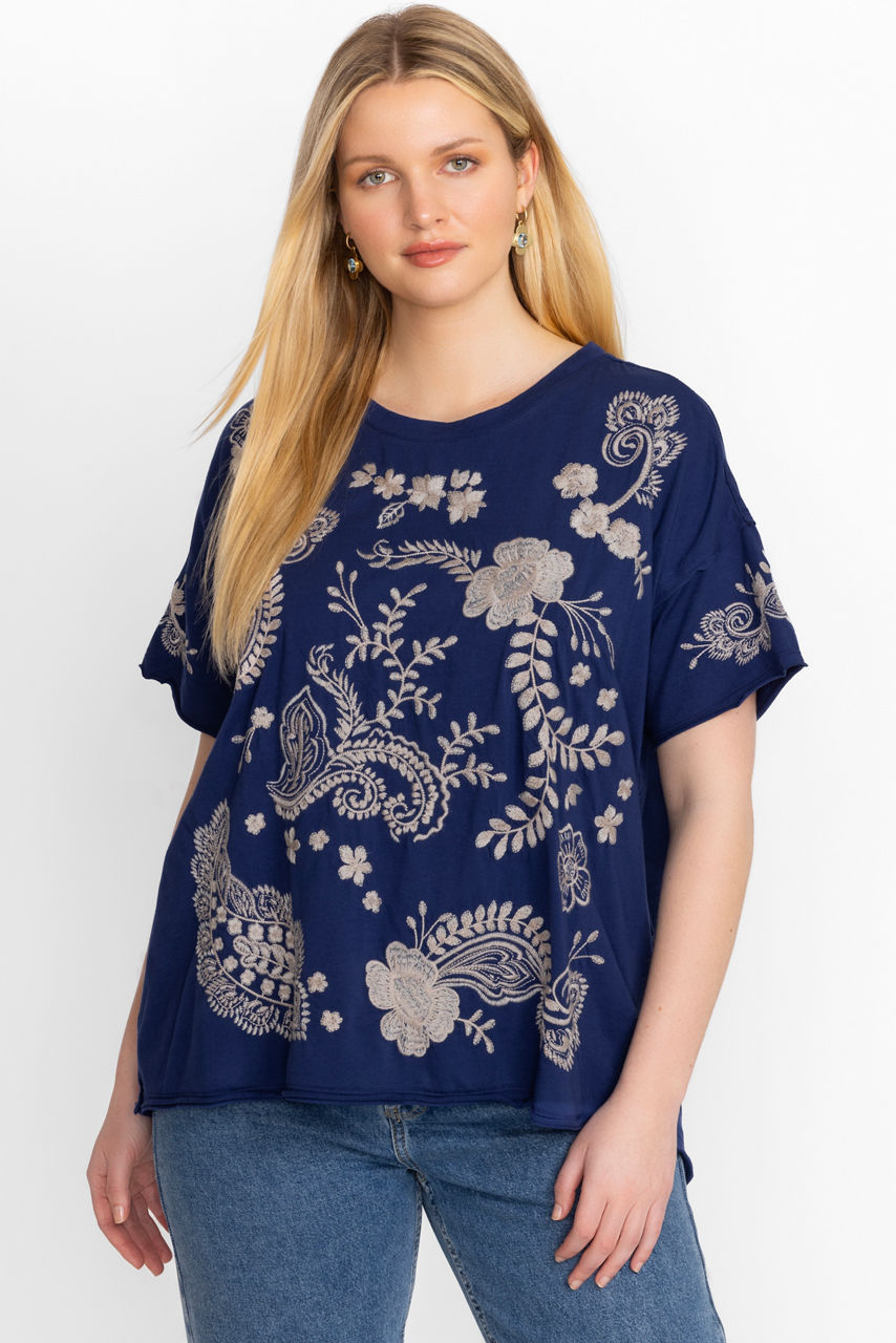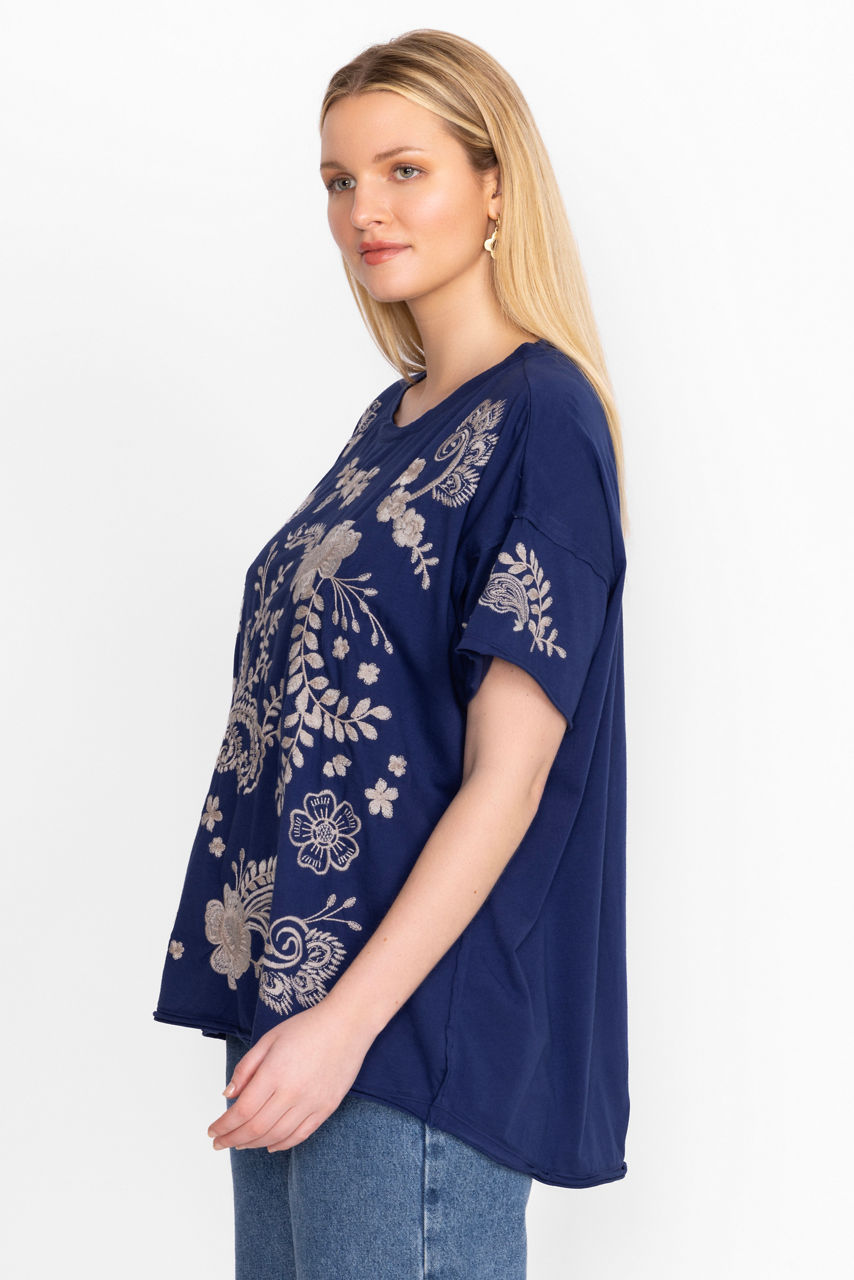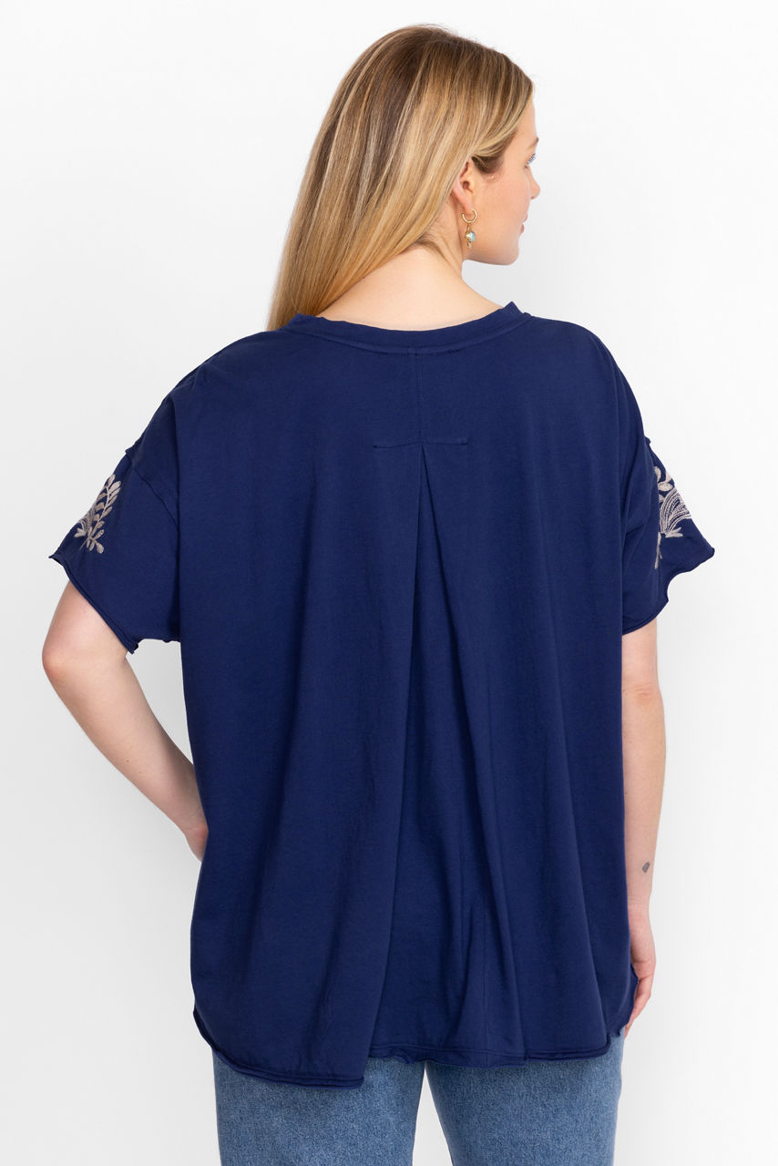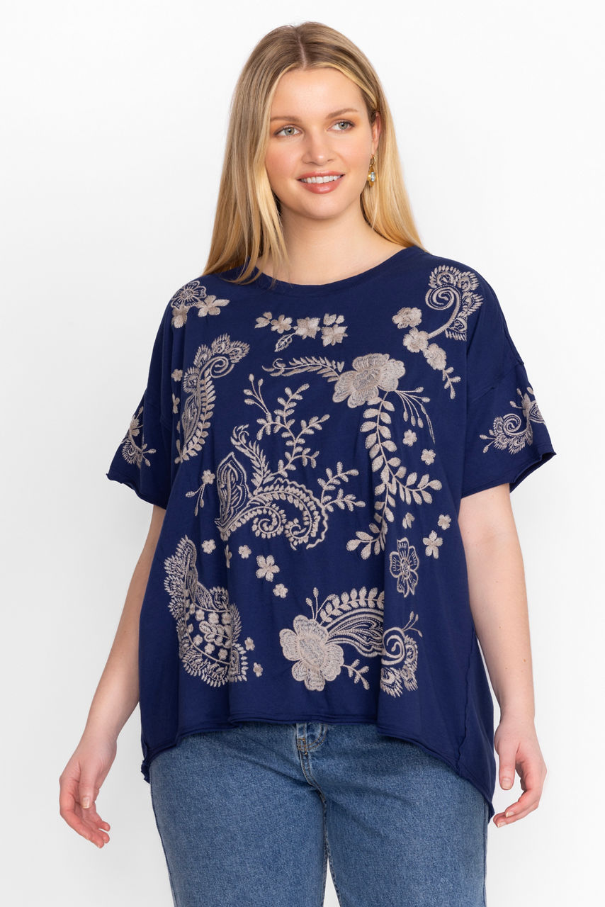 Crafted in 100% cotton, the Raw Detail Swing Tee offers a fresh take on the classic tee. Featuring a crew neckline and short sleeves, this relaxed-fit tee is embellished with intricate placement embroidery for an elevated casual style. Pair with linen shorts and a cross body bag for a polished weekend ensemble.