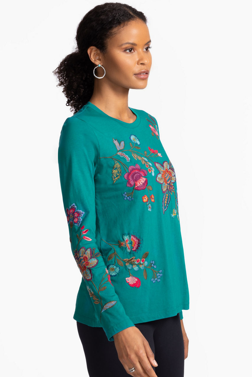 Crafted from breathable 100% cotton, the Noire Raw Seam Crew Neck Tee is embellished with a vibrant floral display. Designed with a crew neckline and long sleeves, this top is washed in rich color and finished with raw edges. Pair with coordinating cargo pants and fashion sneakers for a bold weekend style.