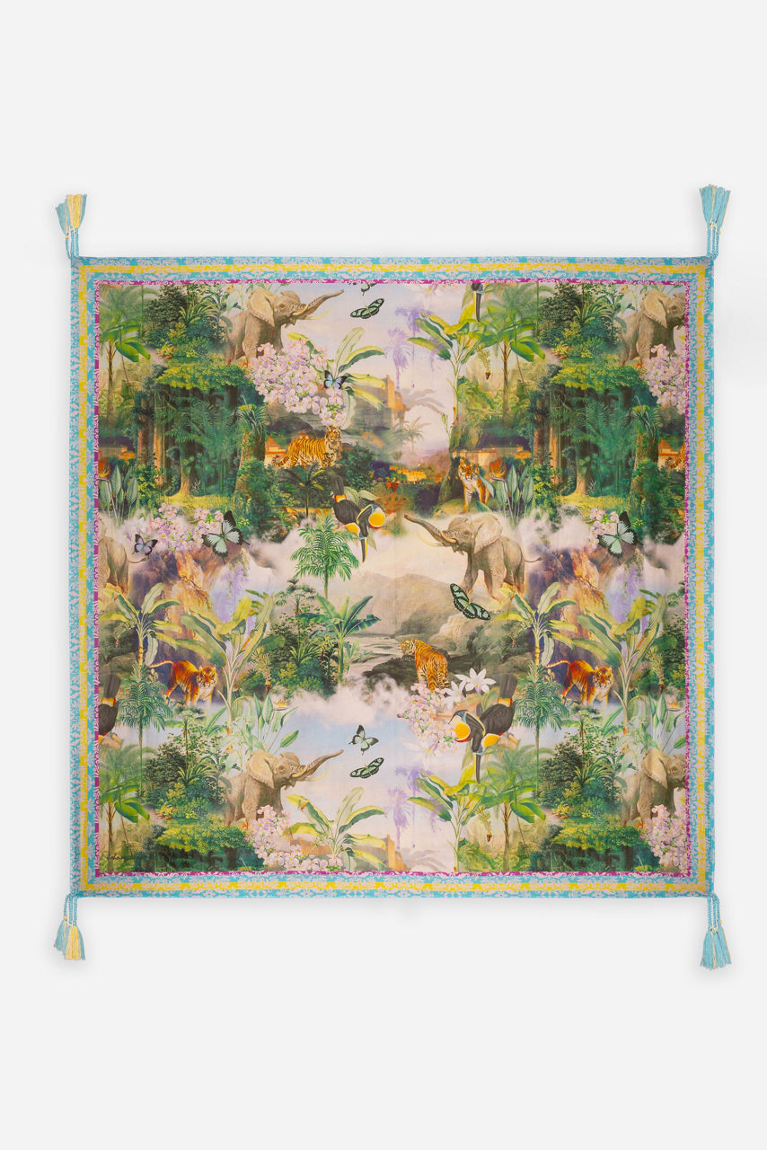 Detailed and serene, the Rawi Silk Scarf features a picturesque landscape scene adding a pop of creativity to your look. Crafted from 100% silk, this unique scarf has been thoughtfully constructed to be easily tied making it a versatile accessory. Tie at the neck or add to the handle of your favorite bag for an eye-catching splash of color.
