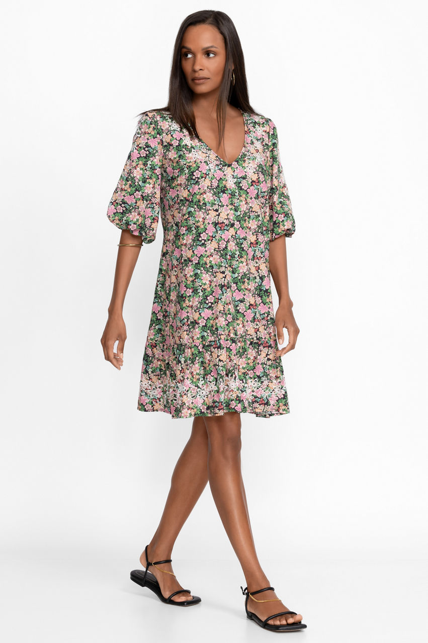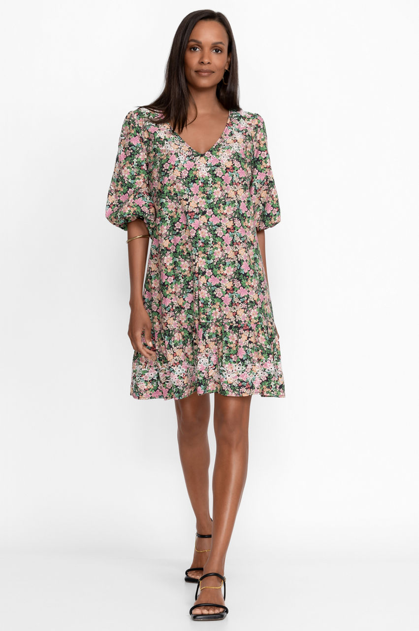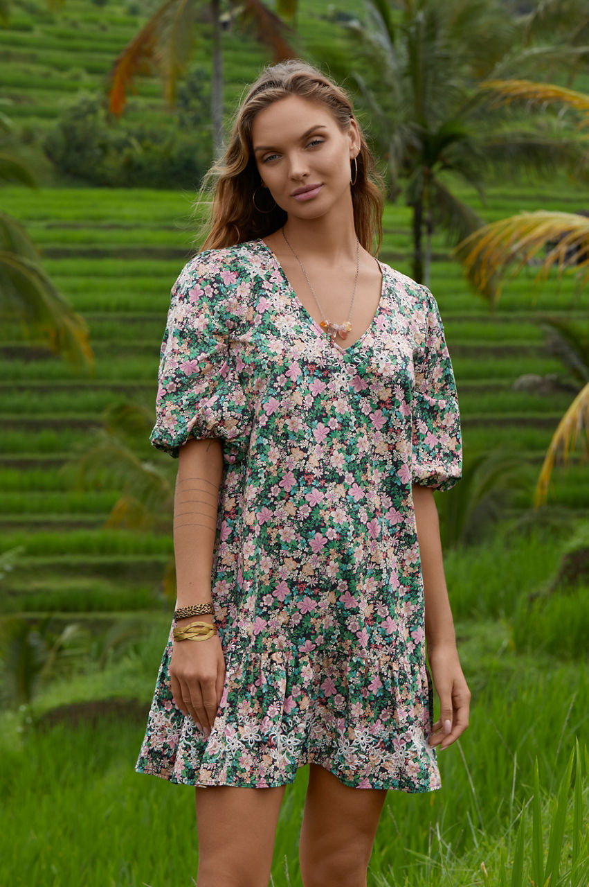 Perfect your warm-weather repertoire with the whimsical Rebekah Poplin Mini Dress. Enhanced by a ditzy floral pattern, this dress is designed from breathable cotton and falls to a mini length, a practical fit for brighter days. Finished with a flattering V-neck, elastic sleeves, and an invisible zipper, this mini dress can be styled with woven sandals and a tote for a dreamy yet relaxed daytime ensemble.