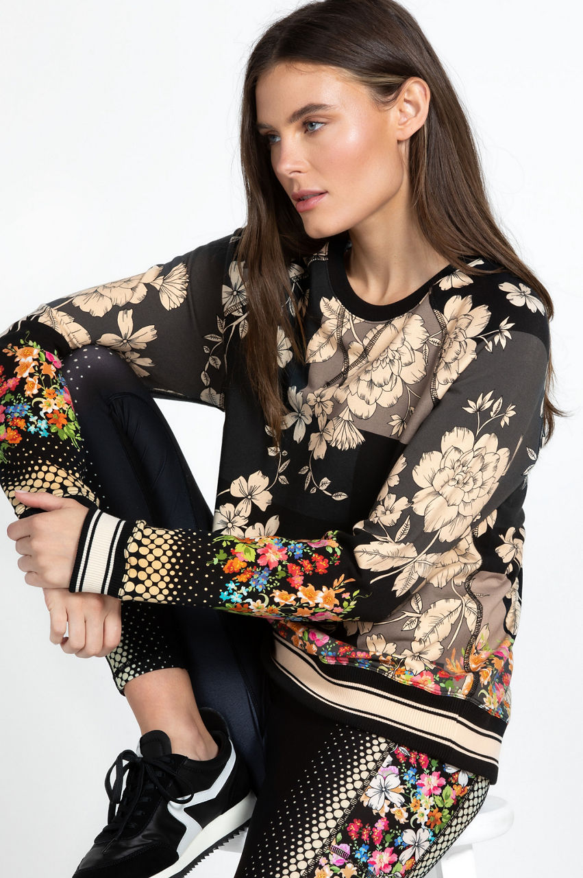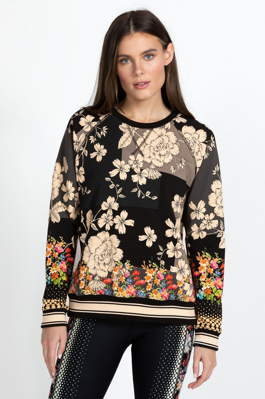 Cut in a regular fit, the Redland Raglan Crew Neck Sweatshirt is an eccentric synergy of color and pattern. This sweatshirt is designed from a comfortable cotton blend with a dash of stretch and boasts a crew neck, long sleeves, striped, ribbed edges, and a monochromatic floral background with a contrasting flower-dotted print. Style with knitted pants for a blossoming off-duty look.