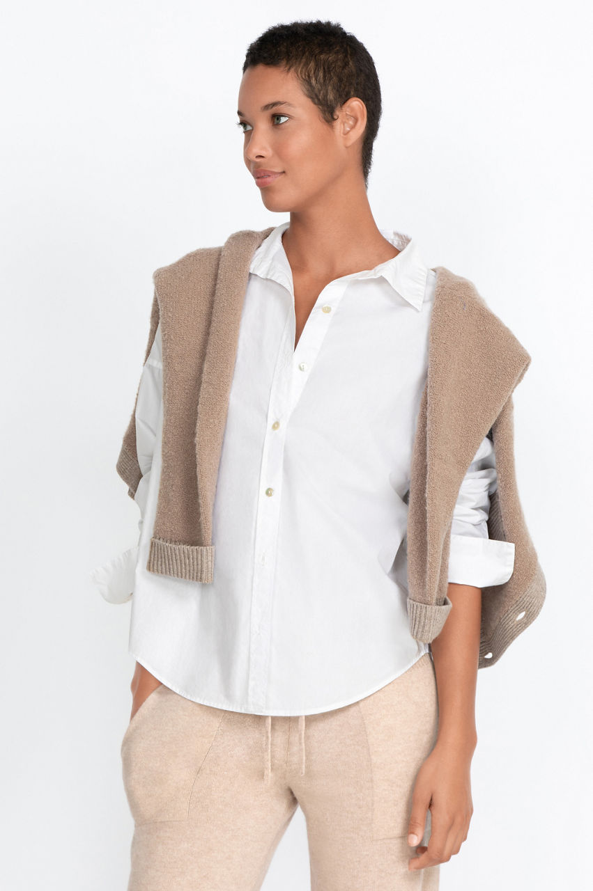 Ultra-soft and featuring our signature cotton, the Relaxed Button Down Shirt is a must-have staple. With its gorgeous colorways and thoughtful detailing, this not-so-basic basic is perfect for throwing on after a yoga class or grabbing coffee with friends. Add black high-waisted leggings and sandals and you re good to go.