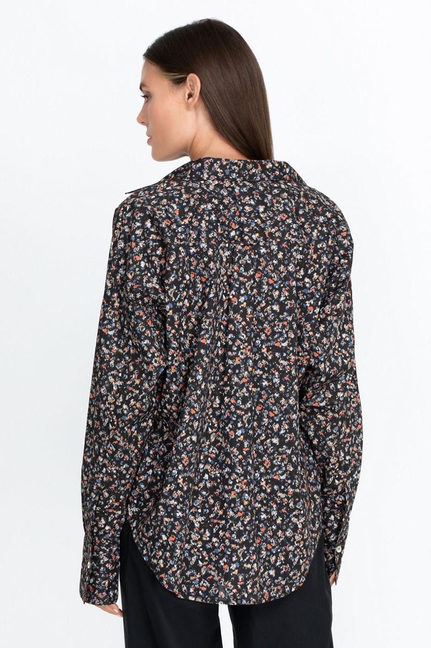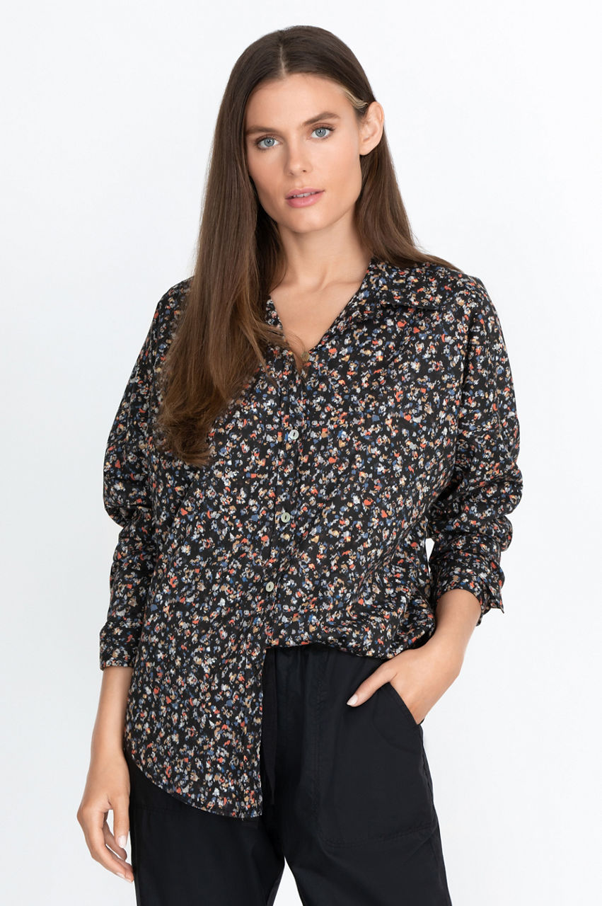 Our Relaxed Button Down Shirt offers a new twist on a timeless classic. The fun 100% cotton print and relaxed fit make this a perfect shirt for any occasion. Wear it layered over a t-shirt and leggings for a casual look, or paired it with some wide legged trousers and flats for a more sophisticated ensemble.