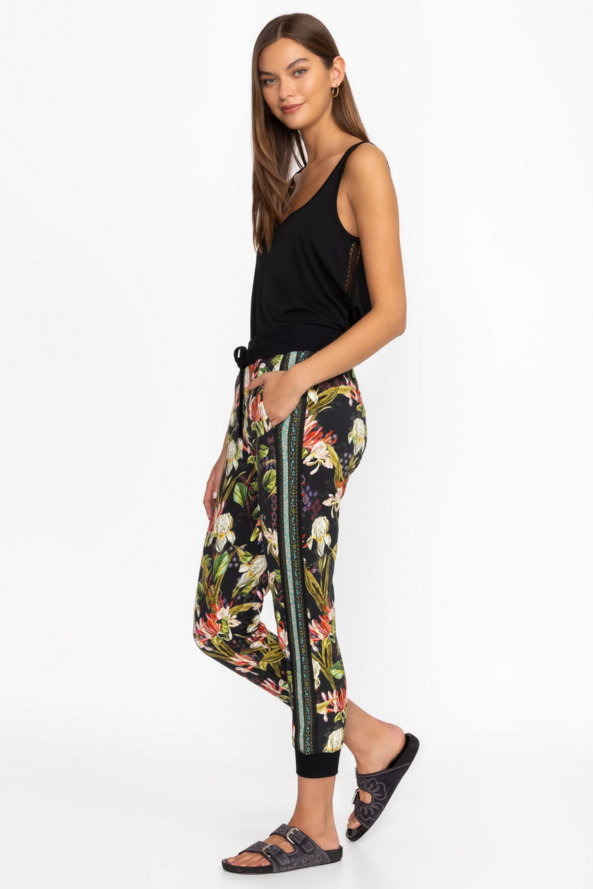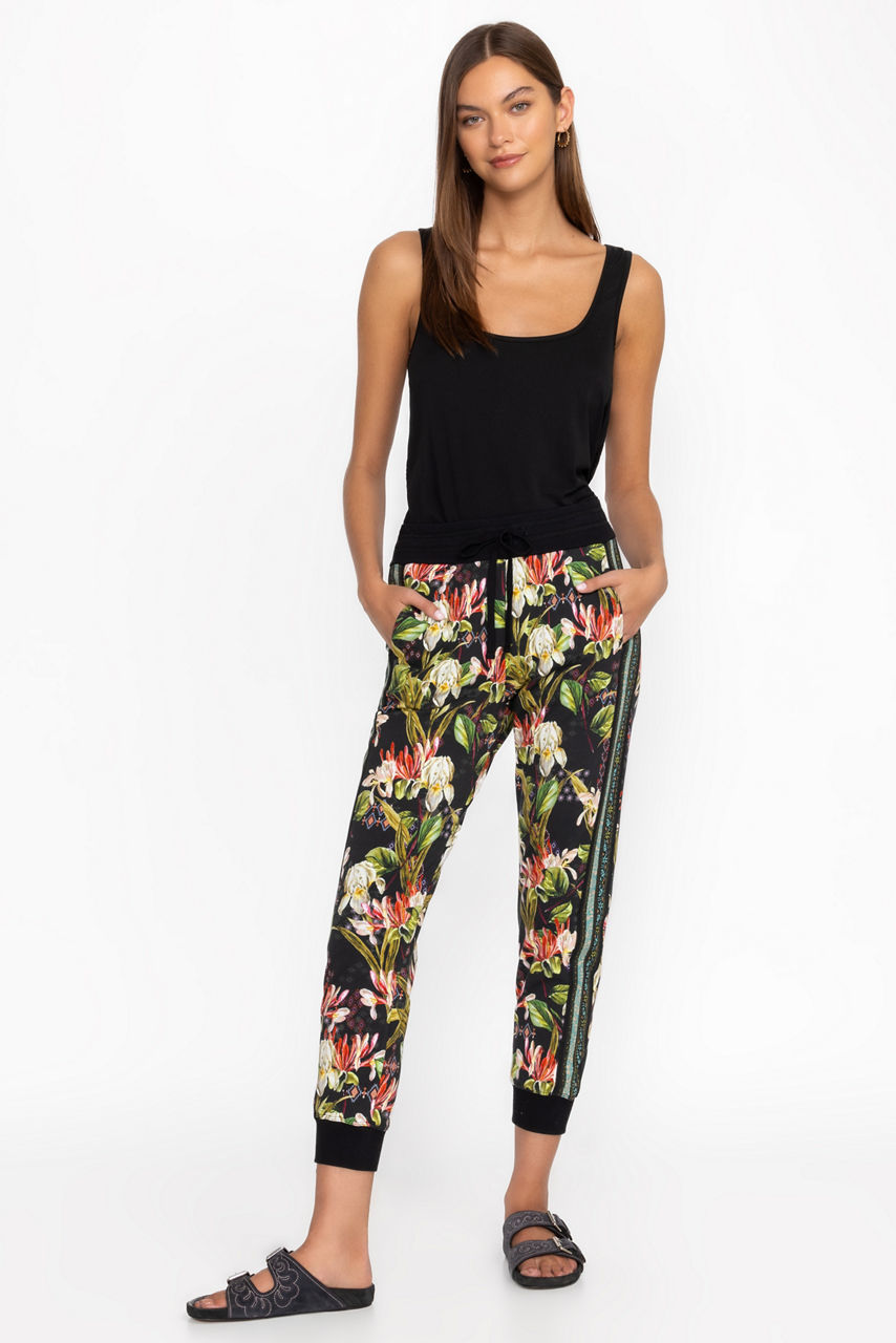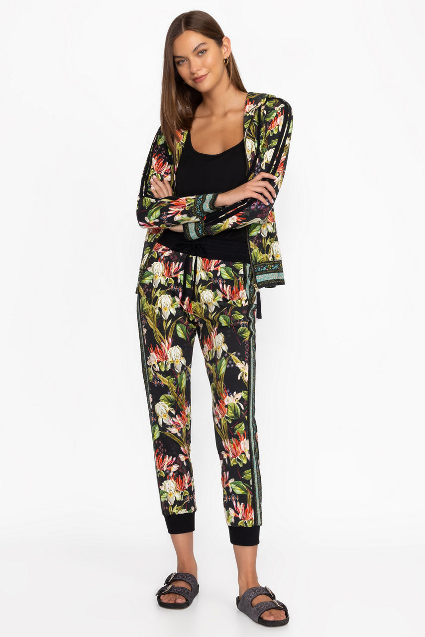 Crafted from a cotton blend with a hint of stretch, the Relaxed Tape Jogger is adorned with a vivacious floral pattern. Featuring an elastic waist with a drawstring for a customizable fit, these joggers offer slip pockets at the hips and are finished with elastic cuffs at the ankles. Pair with a silk cami and coordinating cardigan for an elevated casual look.