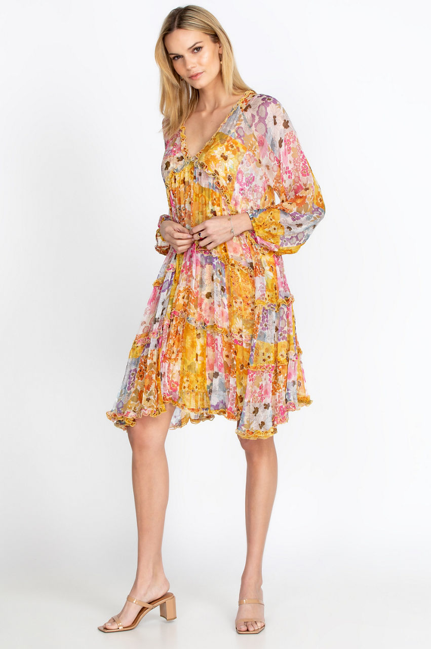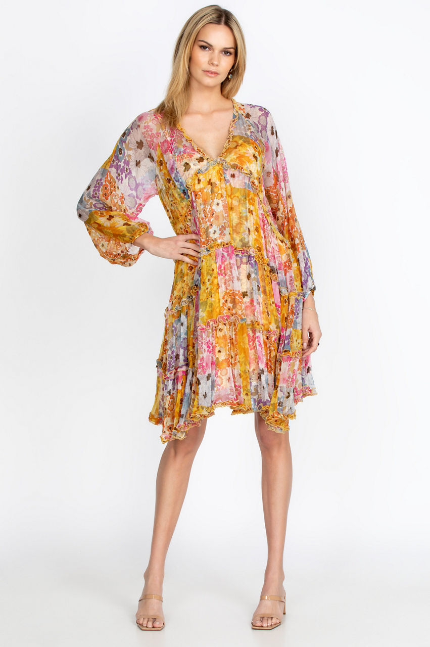 Embrace your inner bohemian with this elegant mini dress. The tiered construction of the Renee Mini Dress will give your outfit plenty of flow and movement, while the colorful floral print and bishop sleeves come together to create a fun retro look. Pair this dress with sandals and a macrame handbag for a casual summertime look.