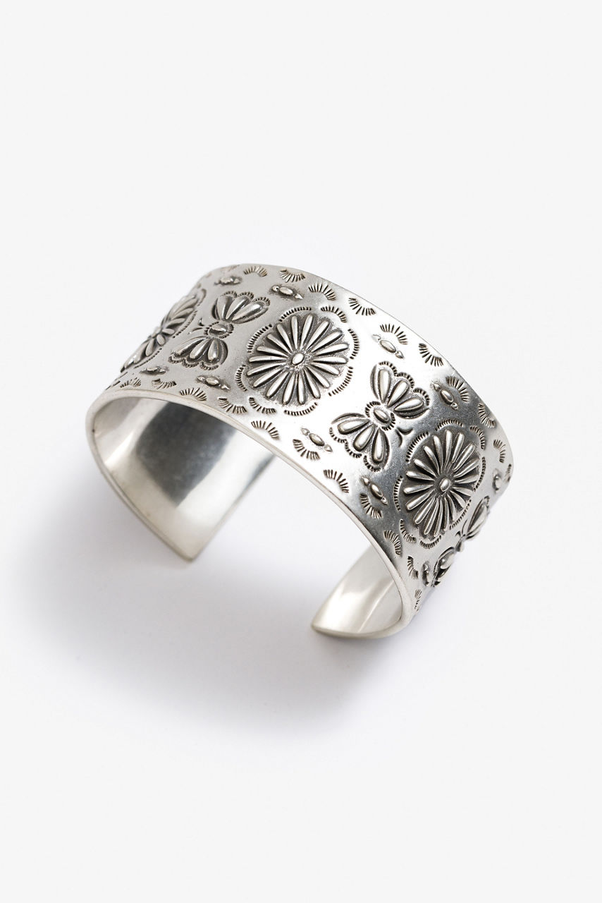Crafted from 100% Brass with silver plating, the River Ranch Concho Cuff is a stunning statement piece. Featuring bold etched concho designs on a sleek slip-on cuff, this bracelet adds texture and shine to your look. Add to a casual denim on denim look for a timeless classic look.