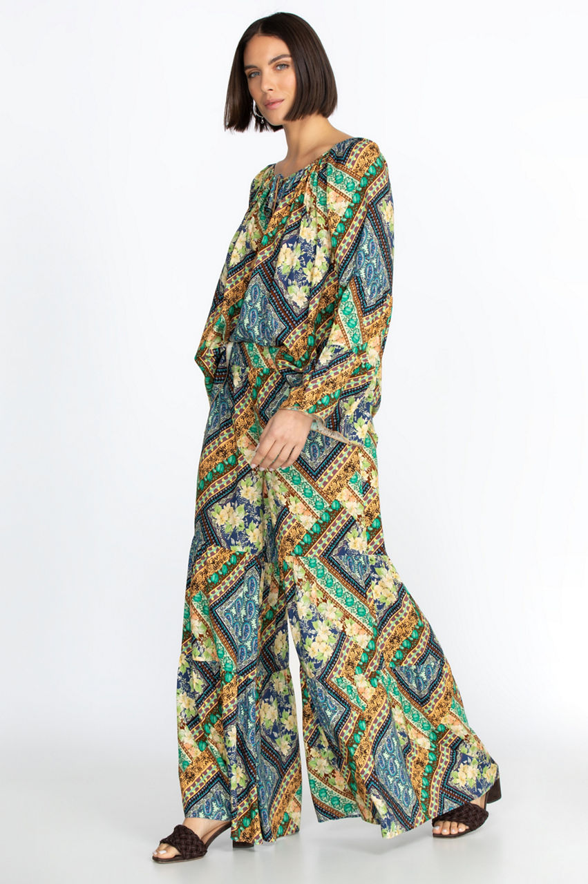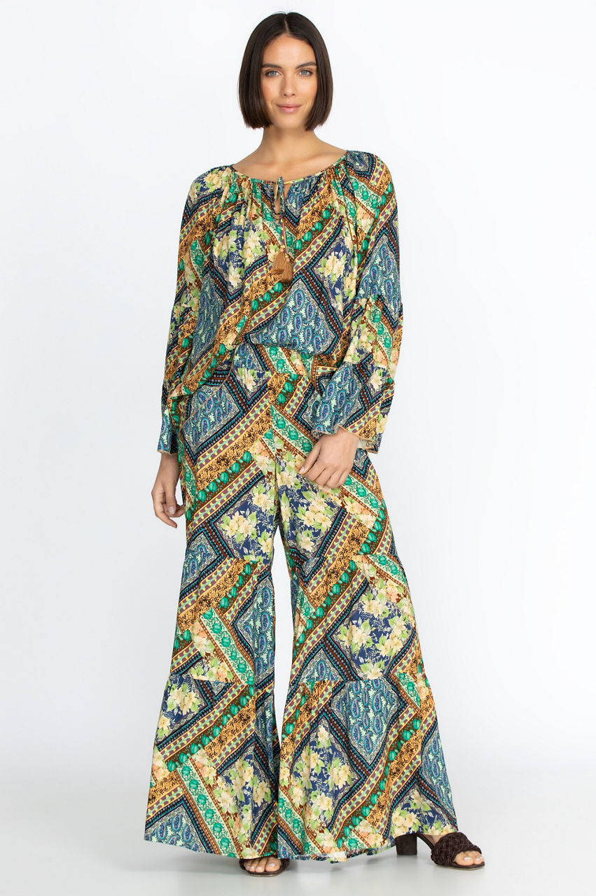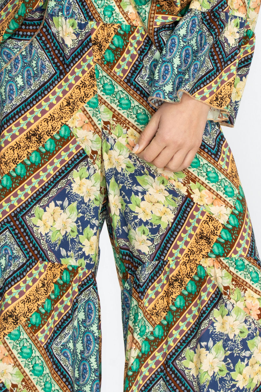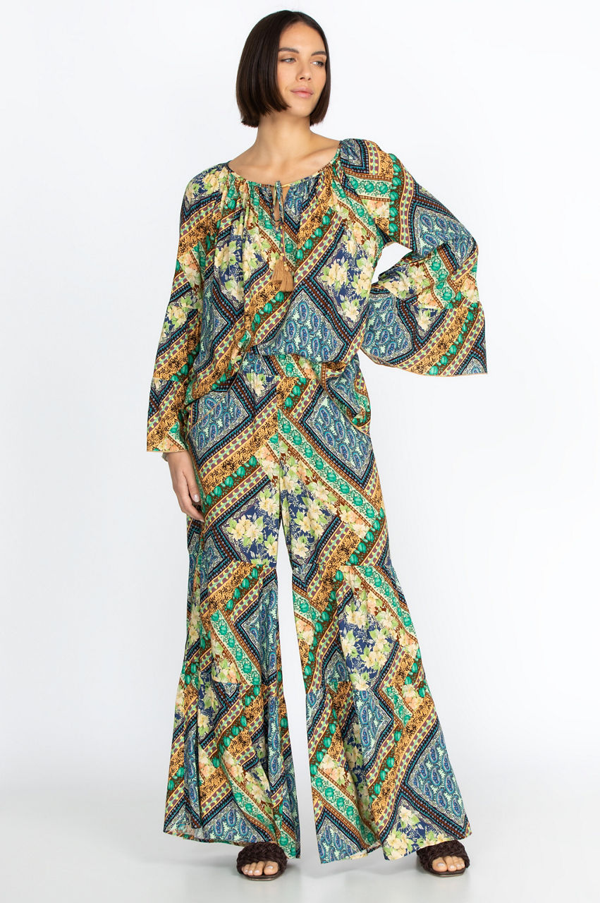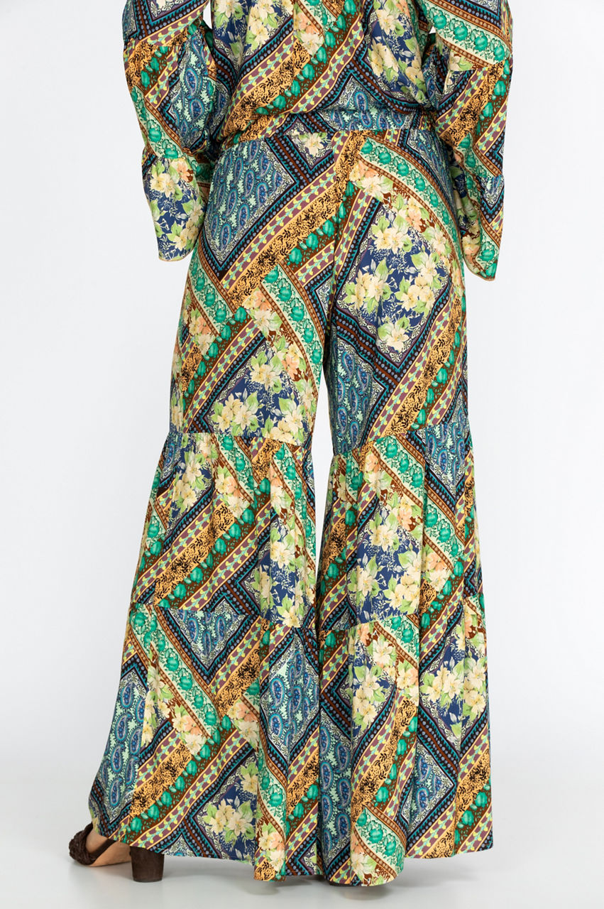 The detailed square and floral pattern complements the earthy-toned color palette on the Rivera tiered pants. Infused with a bohemian aesthetic, these pants are cut in a relaxed fit and spun from rayon, the perfect combination for warmer weather and sun-filled days. Style with a printed blouse or opt for a simple look with a plain button-down shirt.