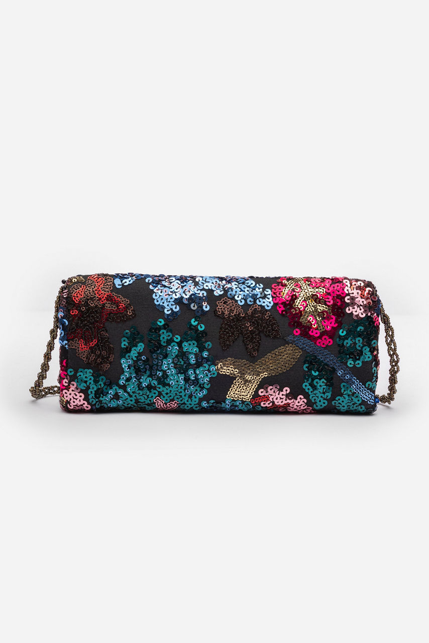 Brilliantly embellished with vibrant sequins in bold colors, the Rosali Sequin Clutch adds a touch of sparkle to any evening look. Featuring an intricately beaded magnetic flap closure and a chain strap, this elegant bag is a glittering statement accessory. Pair with the Rosali Sequin Dress paired with coordinating strappy heels for a stunning look.