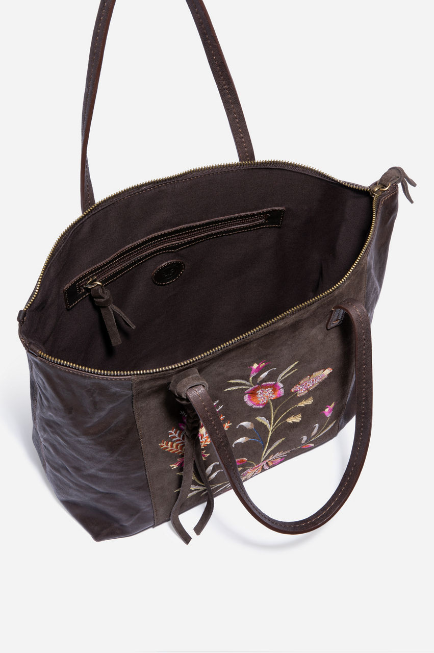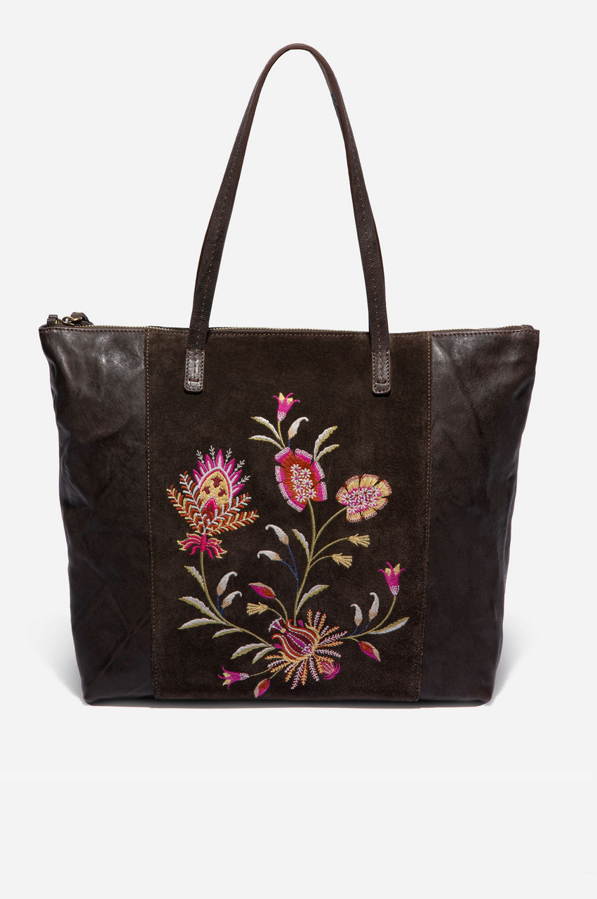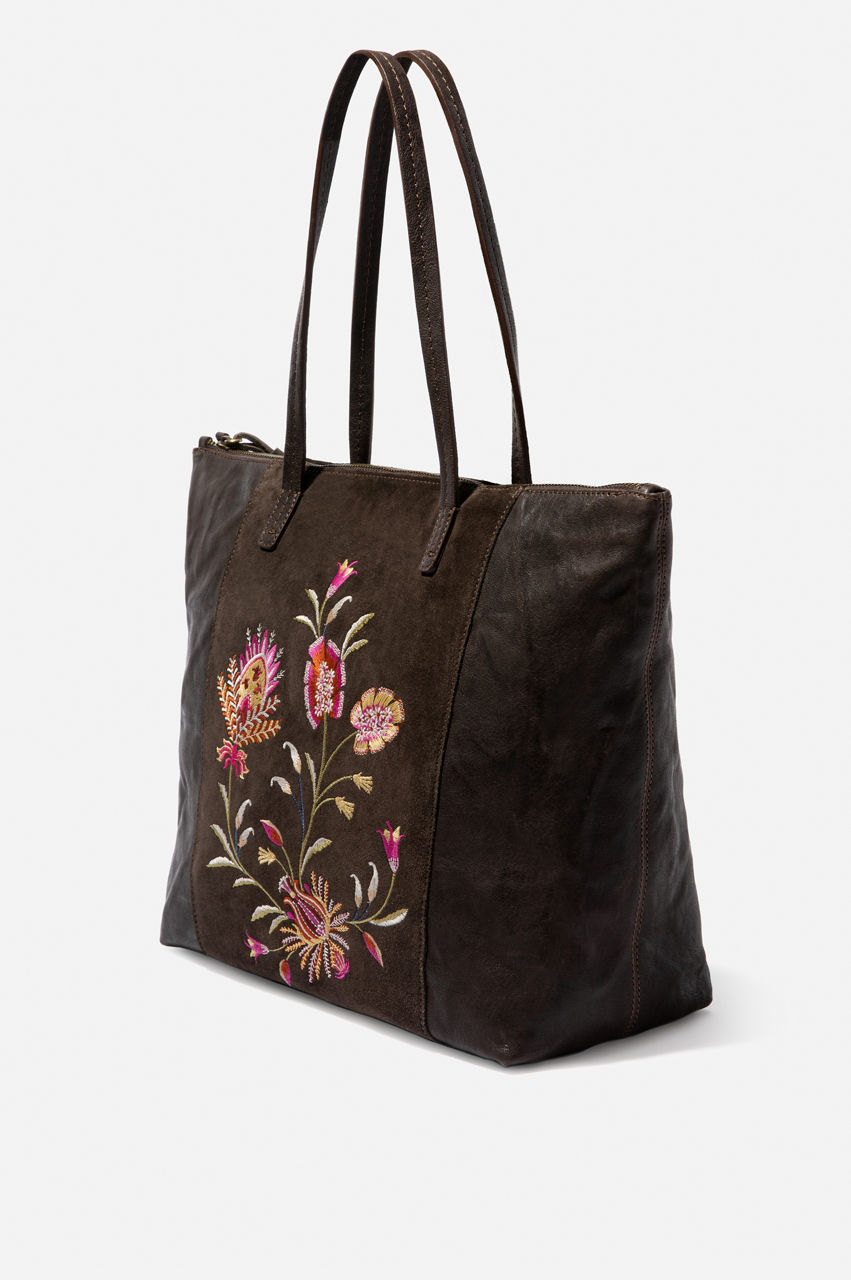 The Rosalva Tippi Tote plays with textures with its leather construction and floral embroidery. The floral motif adds a pop of color to this stunning accessory while the classic construction makes this tote feel timeless and versatile. Combine this stylish tote with some floral jewelry or prints for a stunning result.