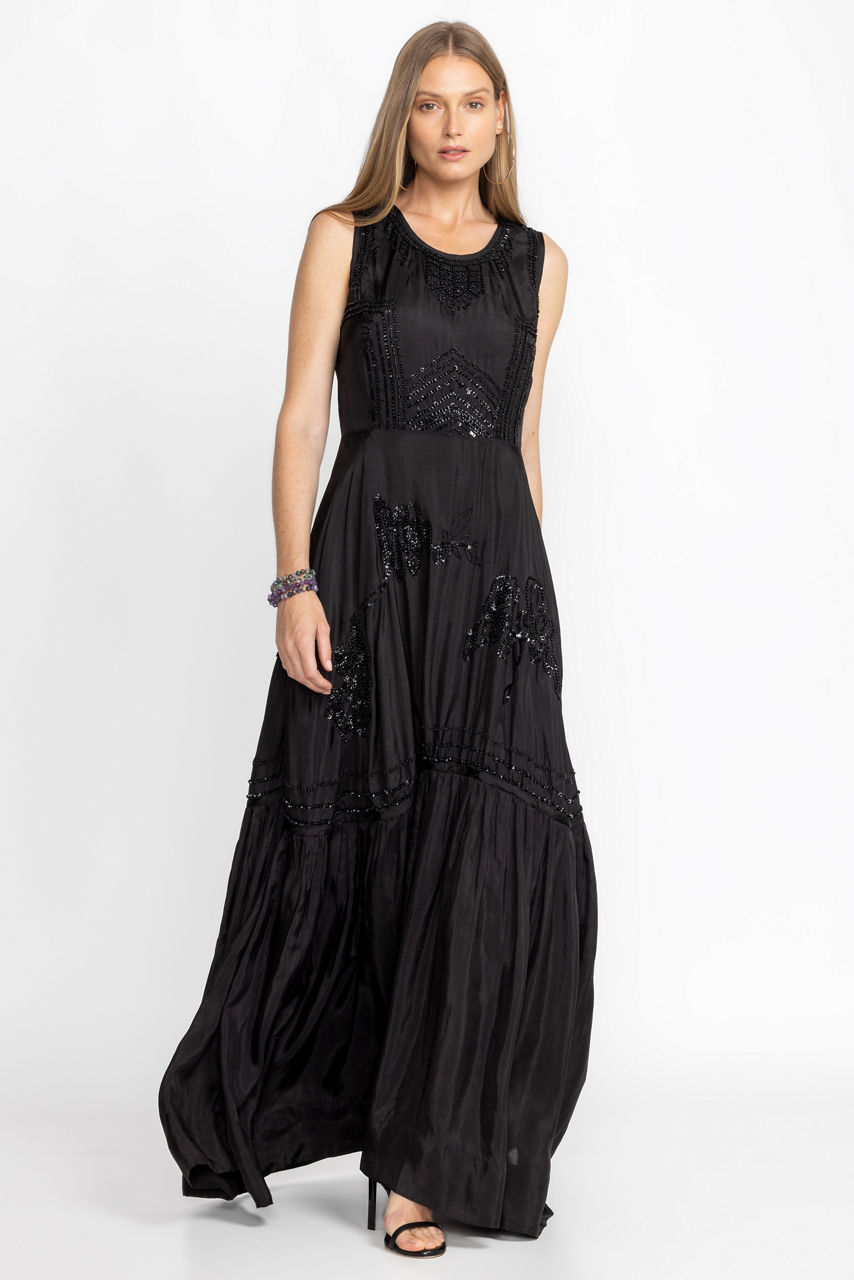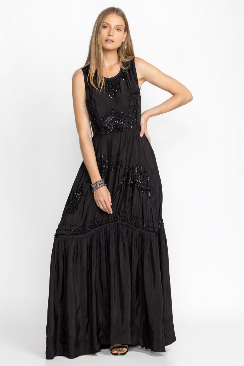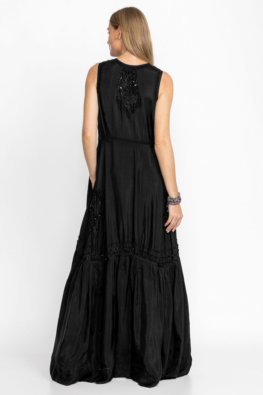 The Rose Noir Dress captivates with its romantic aesthetic and elegant, tiered design. A striking choice for special occasions and evening activities, this dress features an invisible zipper closure at the side and stunning beaded detailing. Style this dress with simple jewelry and a low heel to the next family gathering or party.