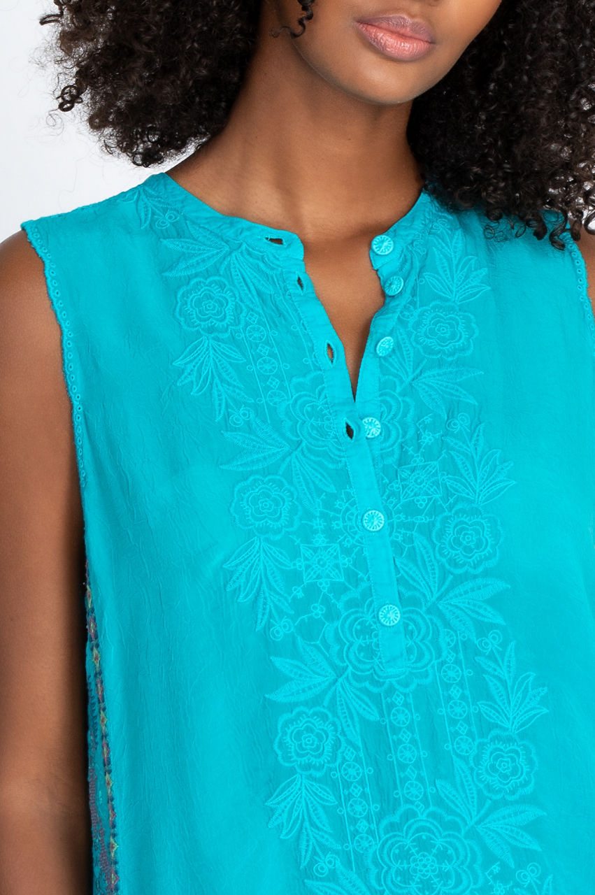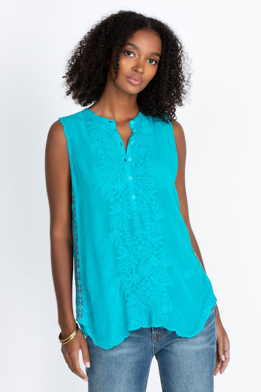 Whether you re welcoming the warm weather or adding color to your boho-chic outfit, our Rosslyn Clio Tank is the perfect item in your fashion repertoire. Its luxe fabrics and gorgeous design give you exactly what you re looking for and more. Pull together a timeless Bohemian outfit by adding your favorite Harem pants and open-toed sandals. Sprinkle some bold boho jewelry and a wide-brimmed hat to complete the ensemble.