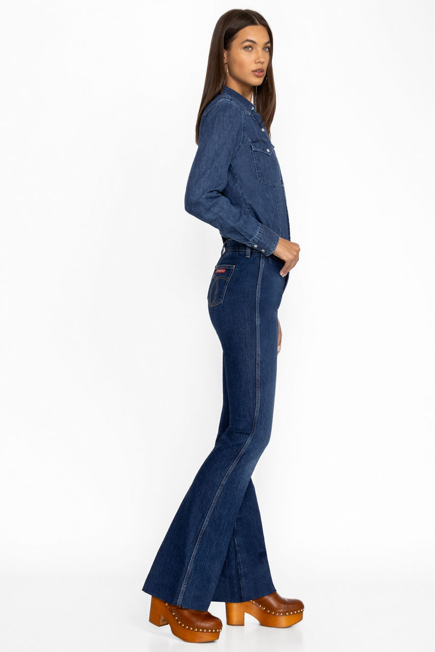 The Rue De La Flare Jean is an ode to vintage allure with its nostalgic flared leg silhouette that pays homage to Sasson's 1970s roots. Blending retro-inspired design and modern sophistication, these jeans are ideal for pairing with sleek boots or elegant heels for a look that is both timeless and chic.