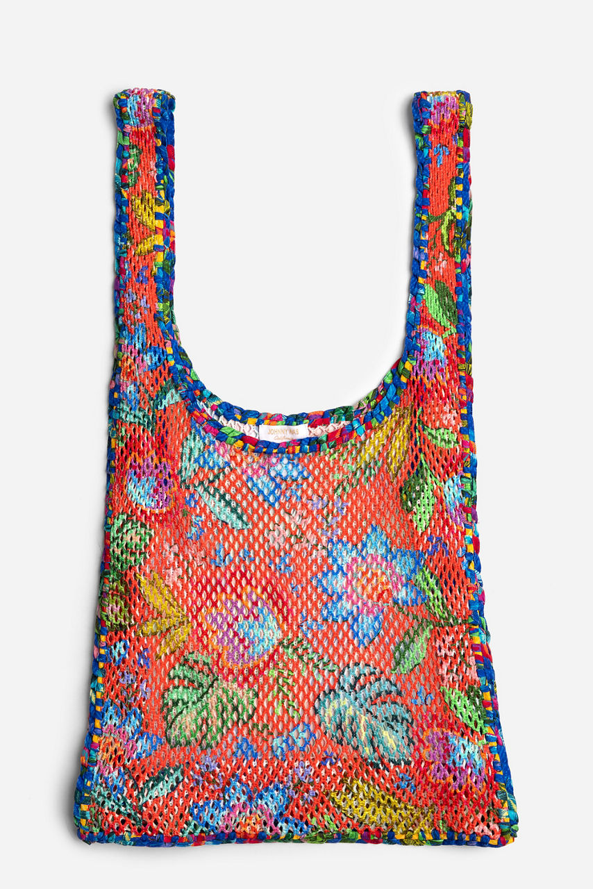 Crafted from 100% crocheted cotton, the Crochet Slouchy Tote is adorned with bold color and rich floral blooms. Featuring wide top handles and an open top, this vibrant bag is finished with a decorative blanket stitch at the seams. Pair with the Ruched One Piece and Crochet Maxi Kimono for a perfectly coordinated, resort-ready ensemble.