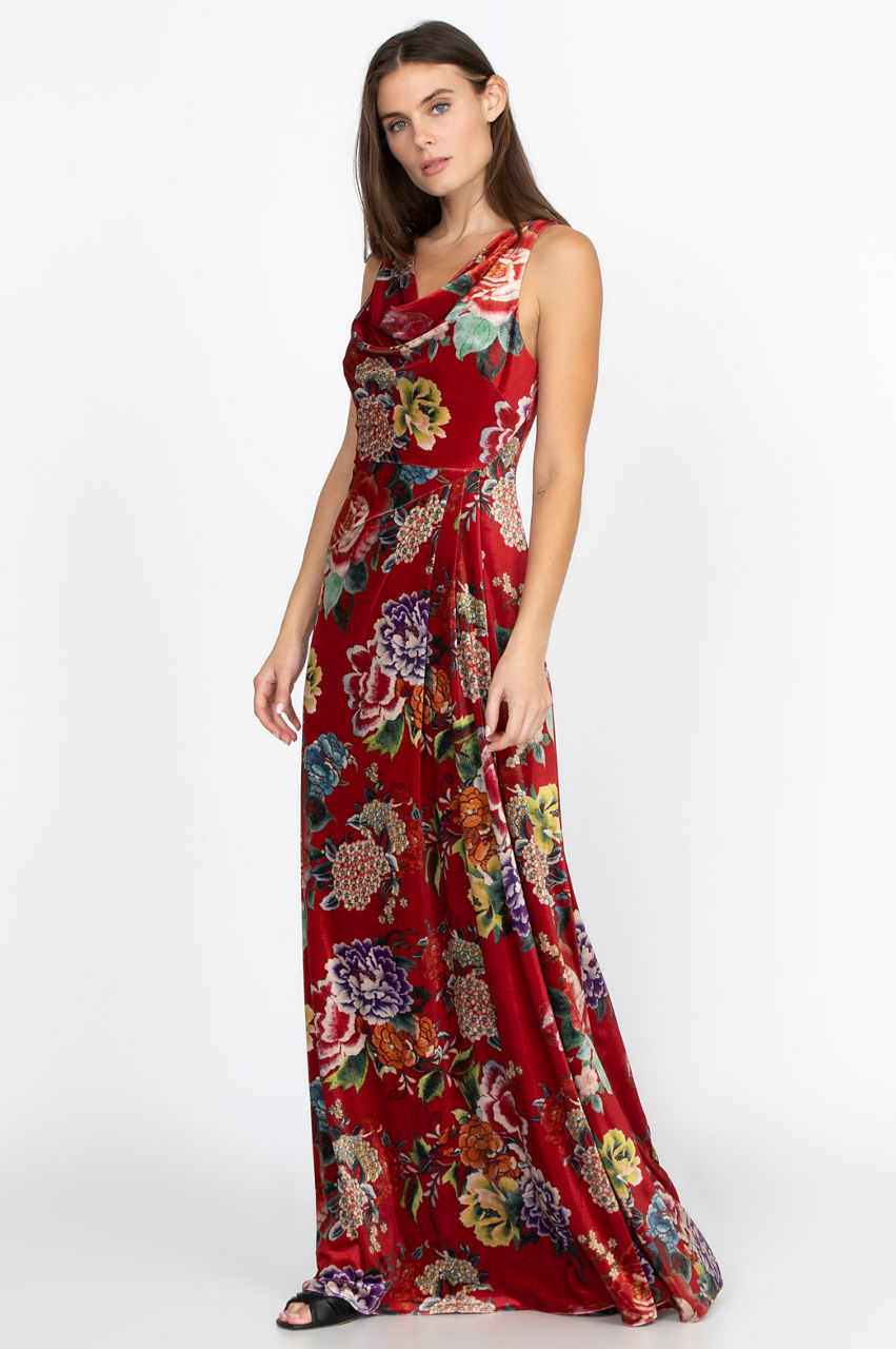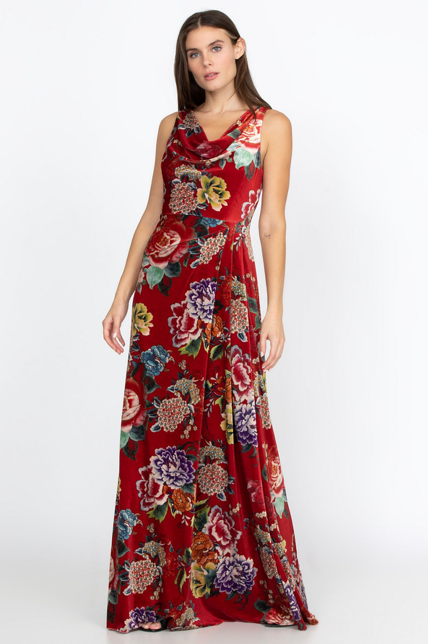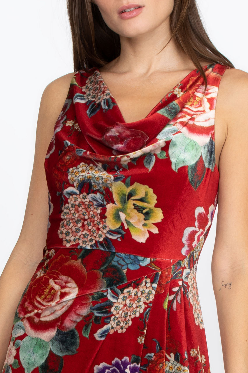 Make a statement with this chic dress. The vibrant colors and floral motifs come together to create a stunning piece. Details like the cowl neck or the flattering cut make this dress ideal for special occasions. It is an elegant piece you ll want to style with your favorite heels and some gemstone jewelry to bring out the rich tones of the dress.