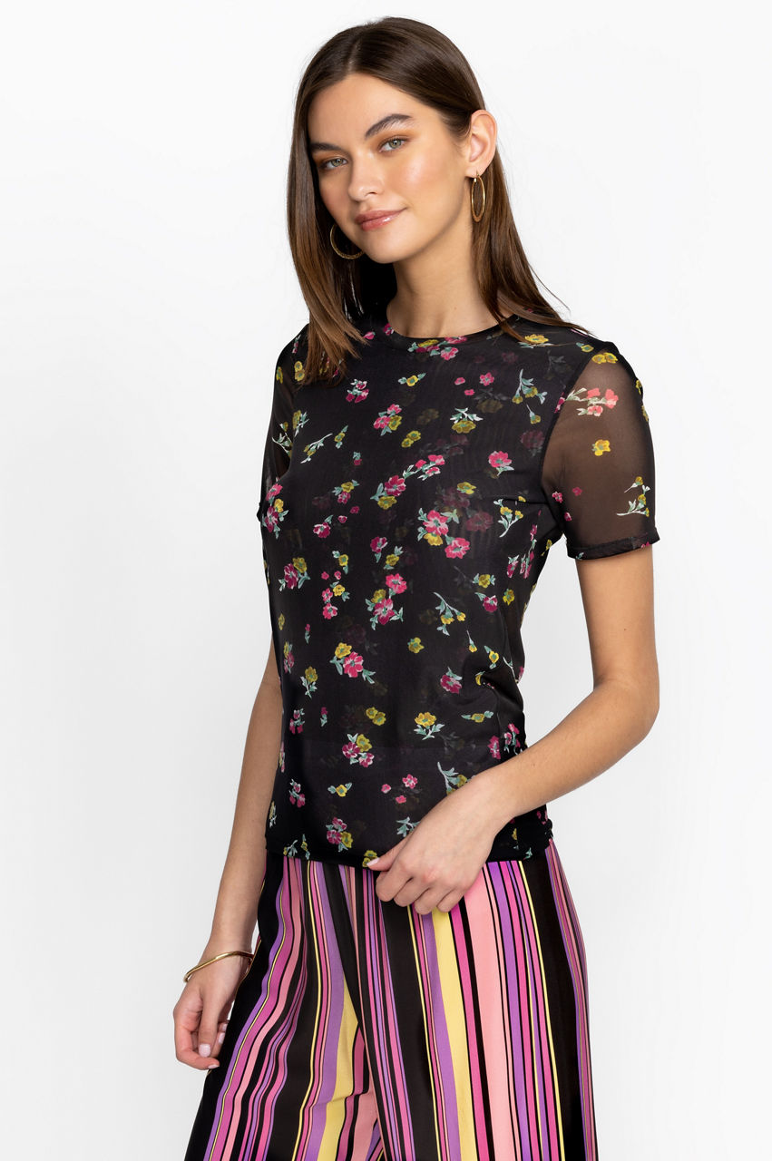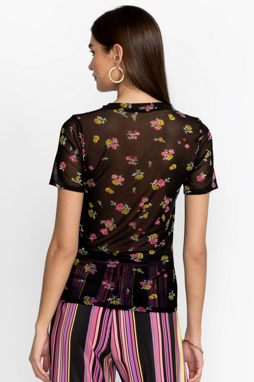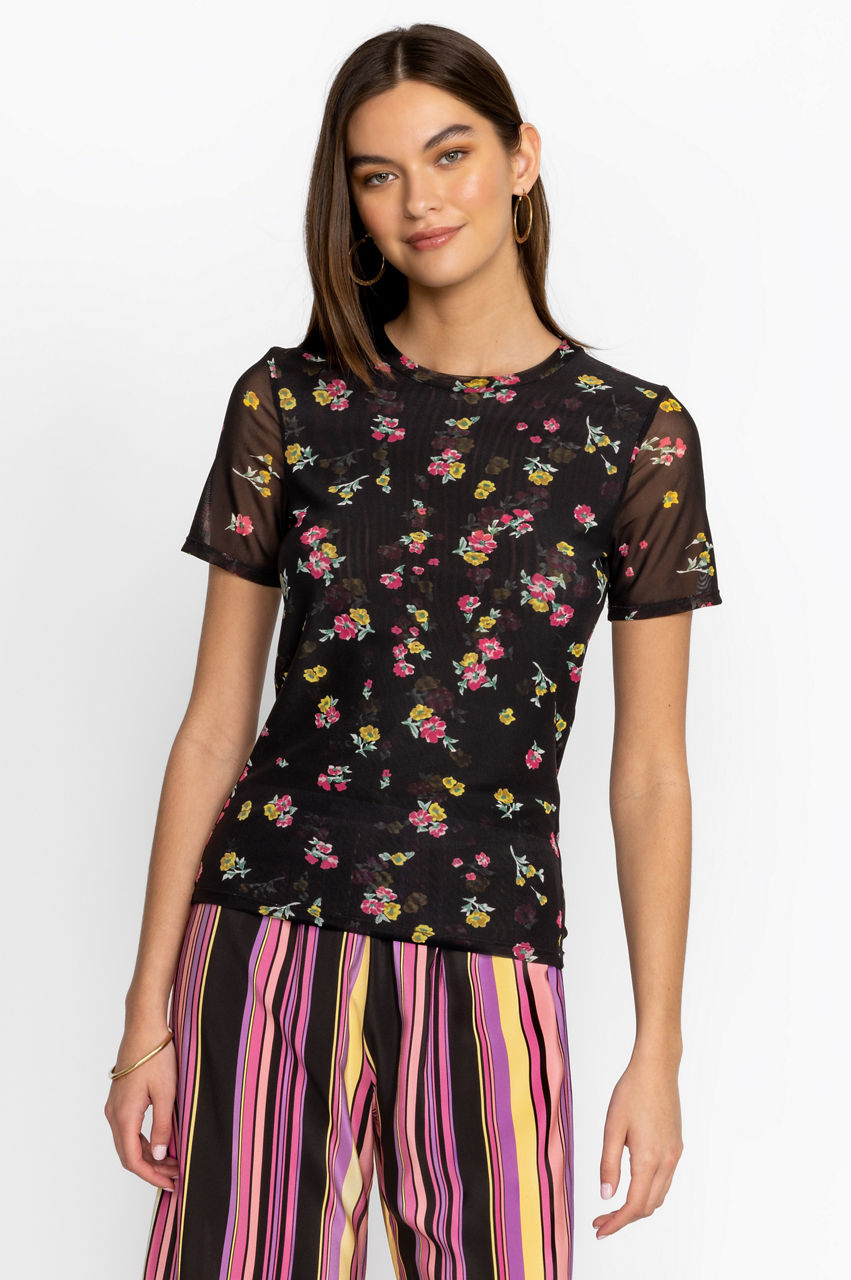 Contemporary in its construction and ladylike in its design, the Samantha Mesh Top merges statement flowers with an easy-to-style colorway. Made from a lightweight mesh fabric with a dash of stretch, this top boasts a round neck, short sleeves, and a repeated flower-dotted print in saturated hues. Pair with denim for a modern wear-anywhere look or style with sophisticated pants for a causal day-to-night look.