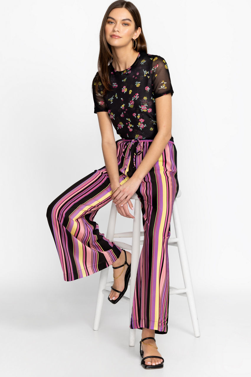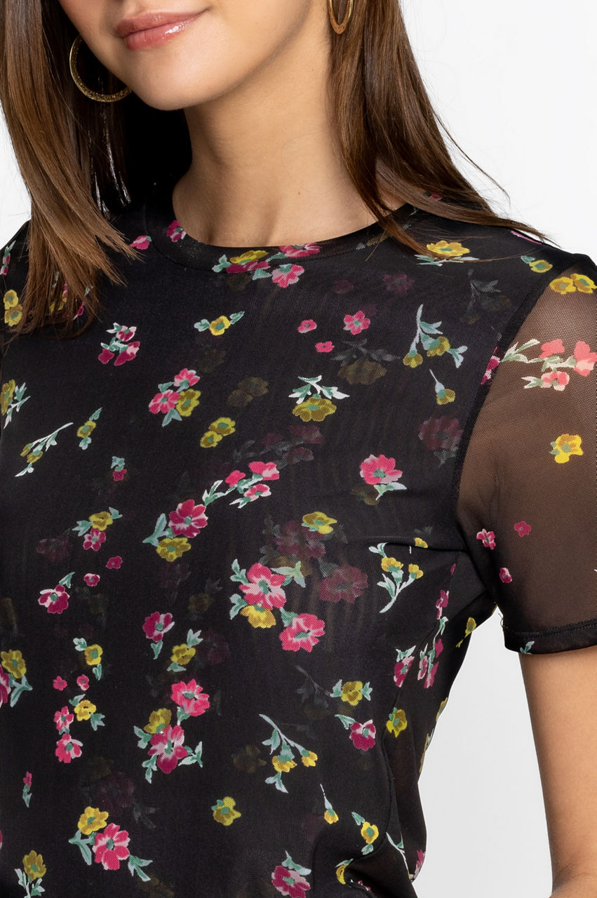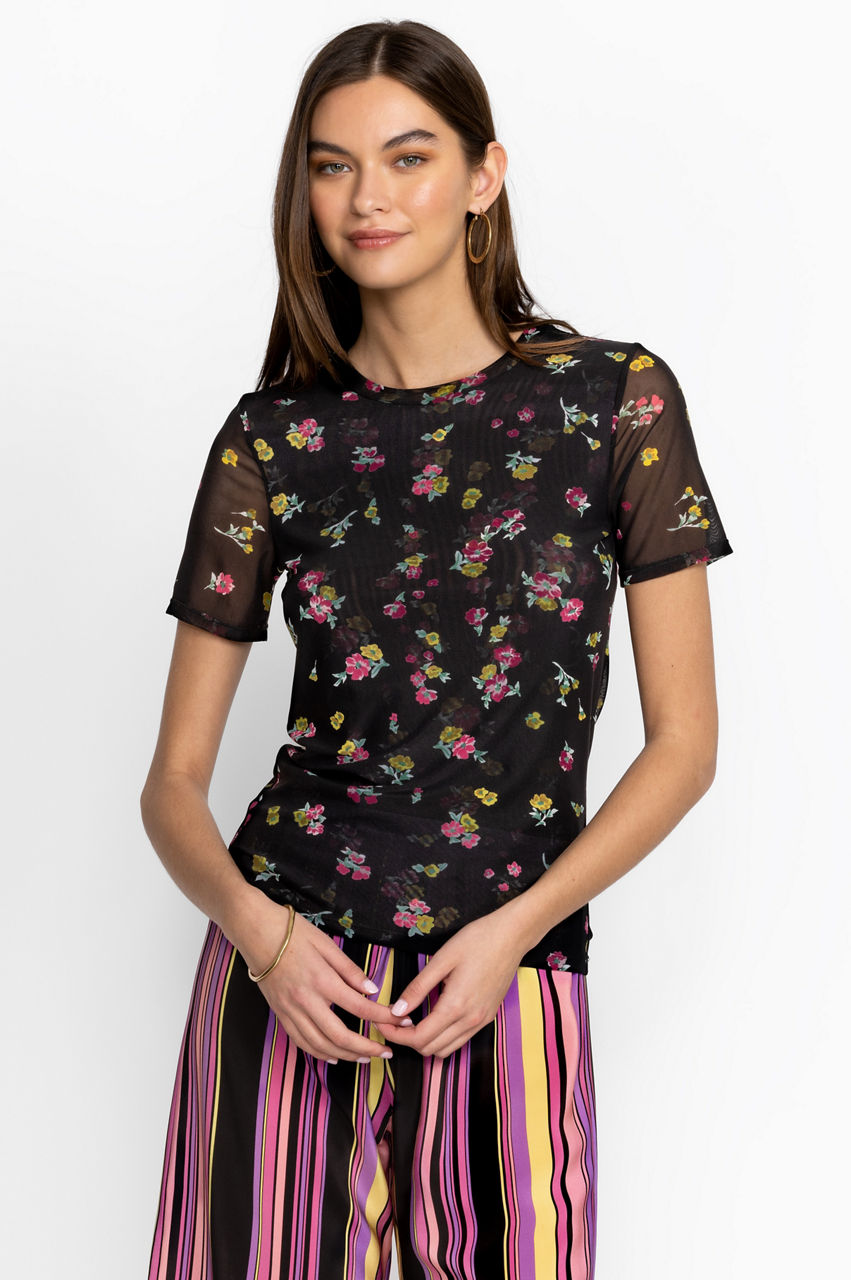 Contemporary in its construction and ladylike in its design, the Samantha Mesh Top merges statement flowers with an easy-to-style colorway. Made from a lightweight mesh fabric with a dash of stretch, this top boasts a round neck, short sleeves, and a repeated flower-dotted print in saturated hues. Pair with denim for a modern wear-anywhere look or style with sophisticated pants for a causal day-to-night look.