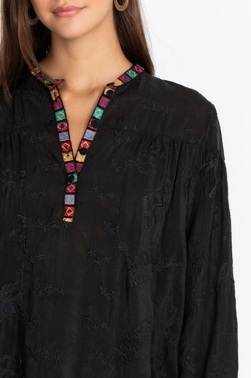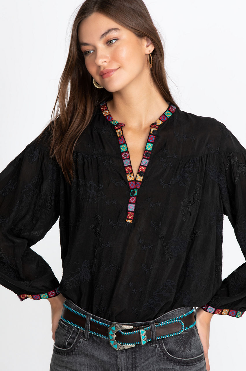 Our Santa Fe Leta Tunic is sure to make a statement. This piece features hand-selected fabrics and boho-inspired prints to show off your style all while keeping you comfortable. Pair this piece with white jeans and stylish flats to bring together an effortless look.