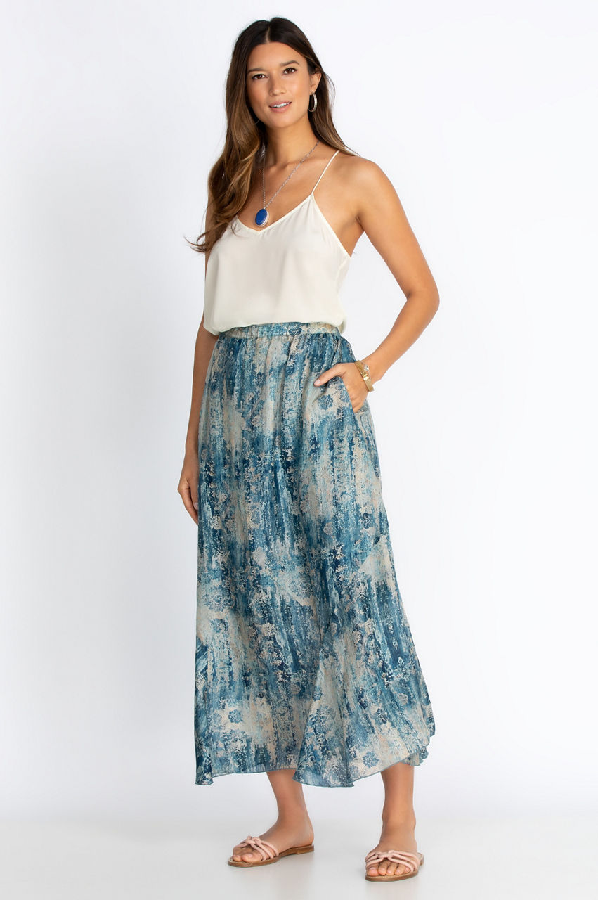 Our trendy Santorini Skirt is a timeless piece that is sure to be a staple this season and many seasons to come. With its long, elegant design and stunning color story, you ll turn heads as you meet up with friends for coffee or visit the nearby museum. You can dress this skirt up with a silk camisole and kimono, or you can dress it down with a simple bohemian tee and embroidered sneakers.