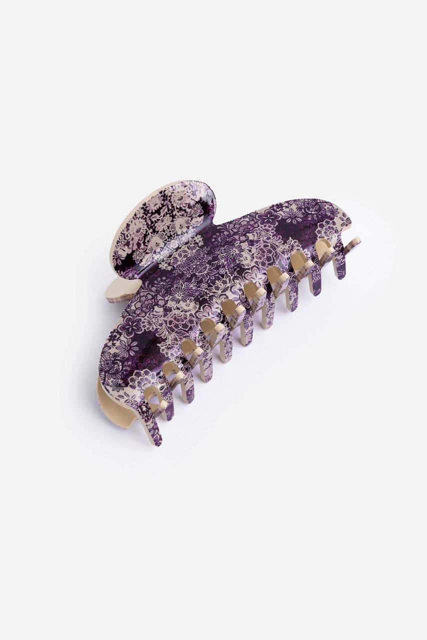 Featuring delicate cream-colored florals on a deep purple backdrop, the Sanya Hairclip elevates your casual style. Crafted from a durable material with a glossy finish, this playful accessory is equal parts functional and fun. This clip perfectly pulls up the sides of your hair or adds the finishing touch to a loose chignon twist.