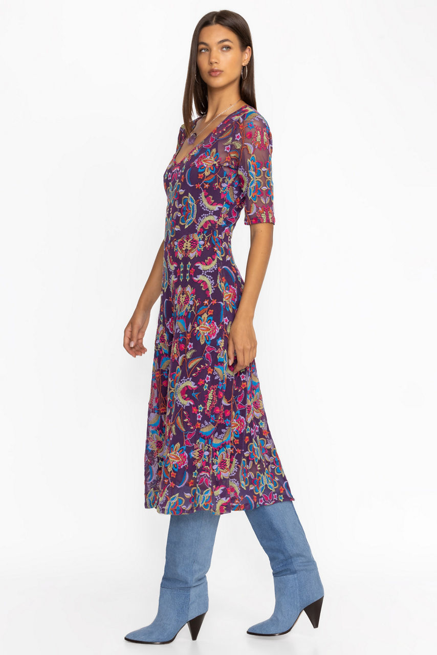 Crafted from a lightweight mesh fabric with a hint of stretch, the Sayler Mesh midi Dress is embellished with bold floral embroidery. Featuring a V-neckline and a back zippered closure, this slip-lined dress is finished with half-sleeves and a flowing A-line skirt. Pair with strappy heels and delicate jewelry for a night out with friends.