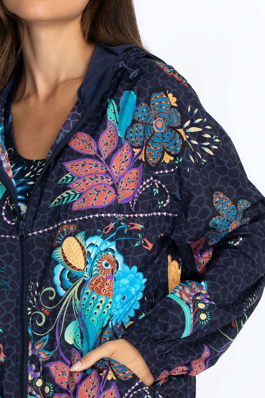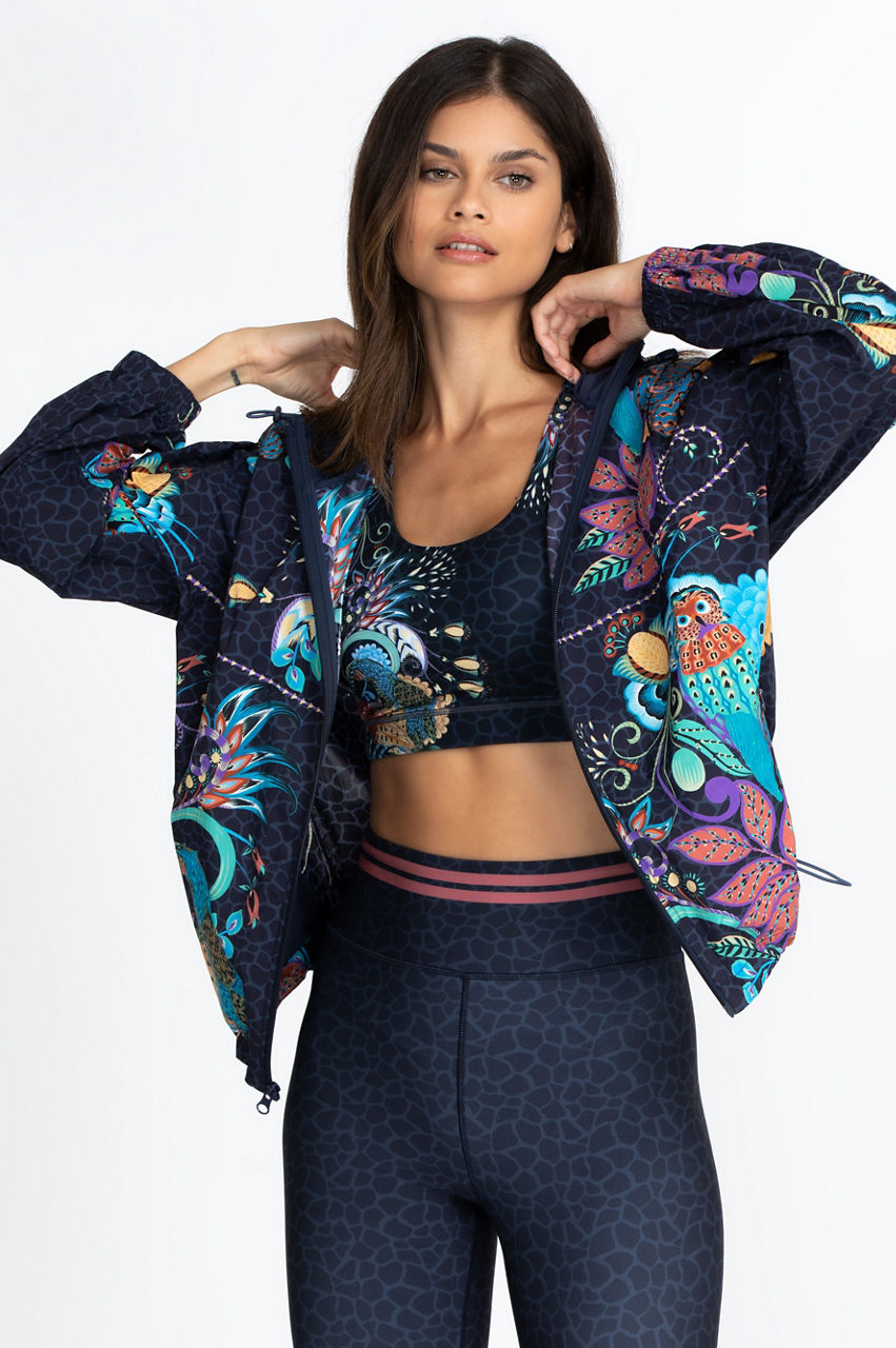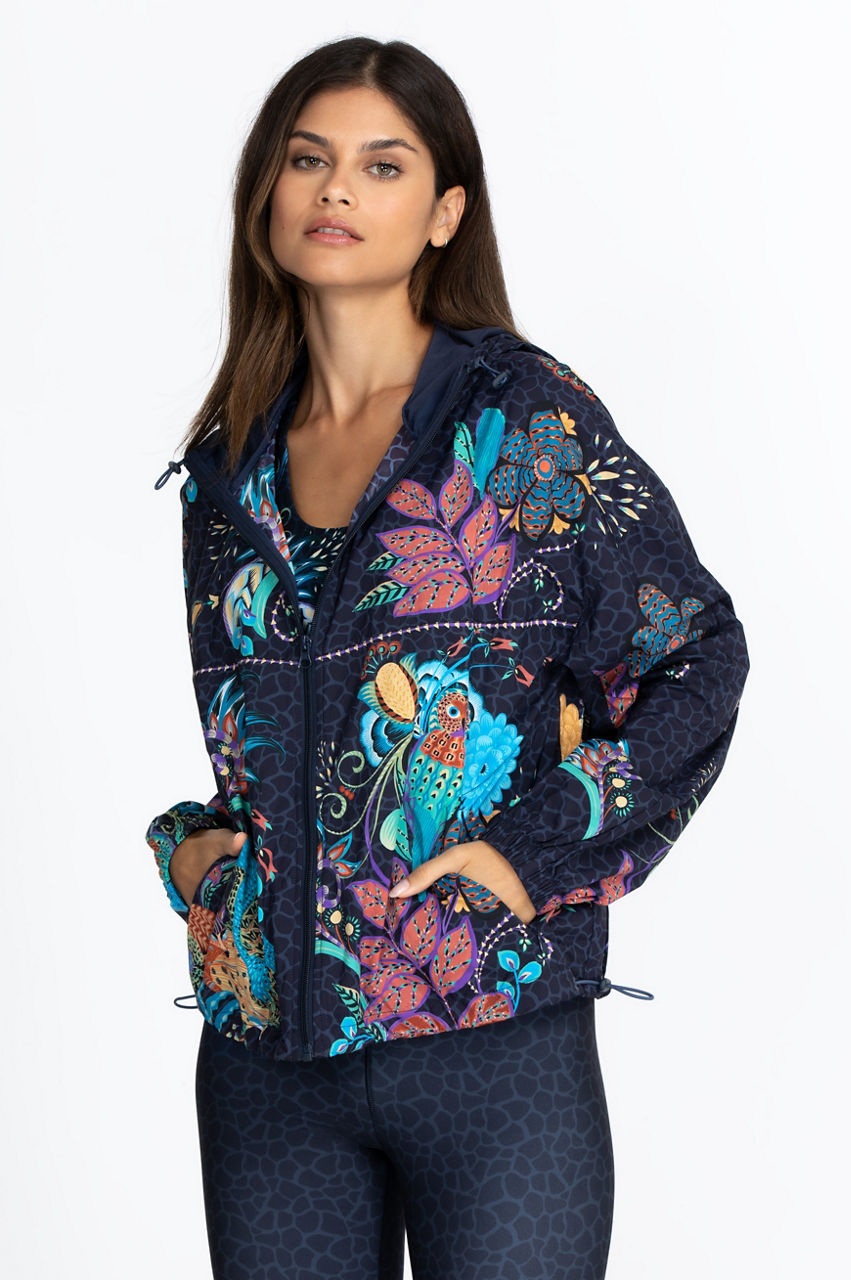The Seabrock Zip-Up Windbreaker Jacket is a stylish and comfortable outer layer with its colorful nature-inspired print. Details like the side pockets, zip-up closure, drawstrings, and elastic waist make this jacket functional. Style this elegant jacket with the matching track pants, or opt for neutral leggings to make the bold print stand out.
