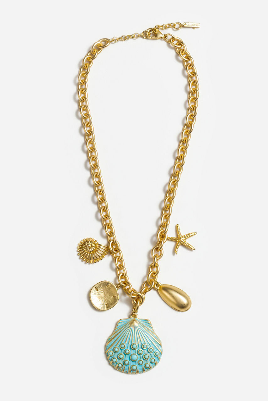 A beautiful reminder of the vastness of the sea, the Seascape Charm Necklace offers a collection of charms paying homage to the ocean. Designed with a clasp closure with an adjustable length this bold jewelry piece is embellished with unique charms crafted from glass stone and resin. Pair with the Seascape Charm Bracelet and a white linen dress for a perfectly coordinated look.