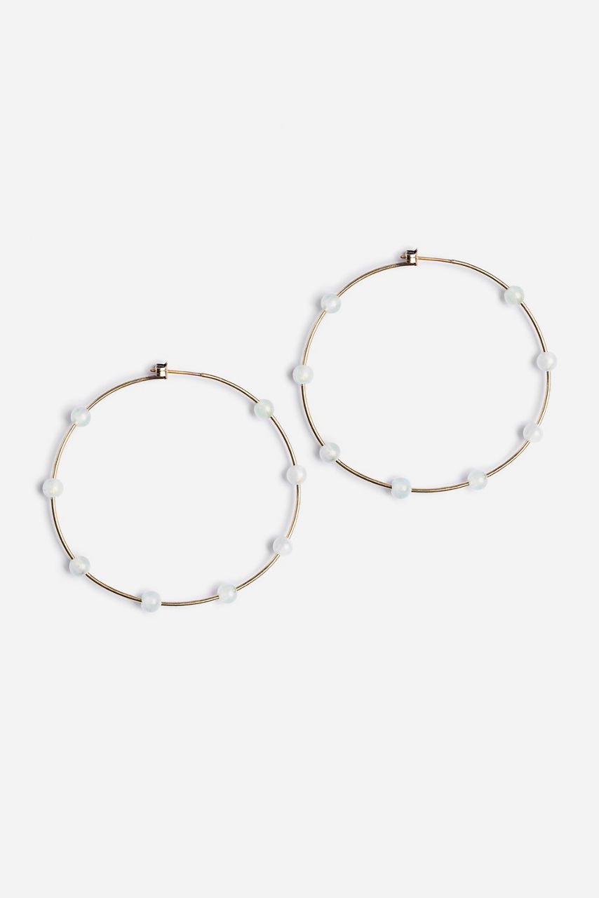 Beautifully crafted in a glittering gold tone, the Semi Precious Hoop Earrings add a hint of sparkle to any look. Featuring classic post backs, these large hoops are embellished intermittently with semi-precious red stones. Pair with a classic little black dress and a cuff bracelet for a timeless look.