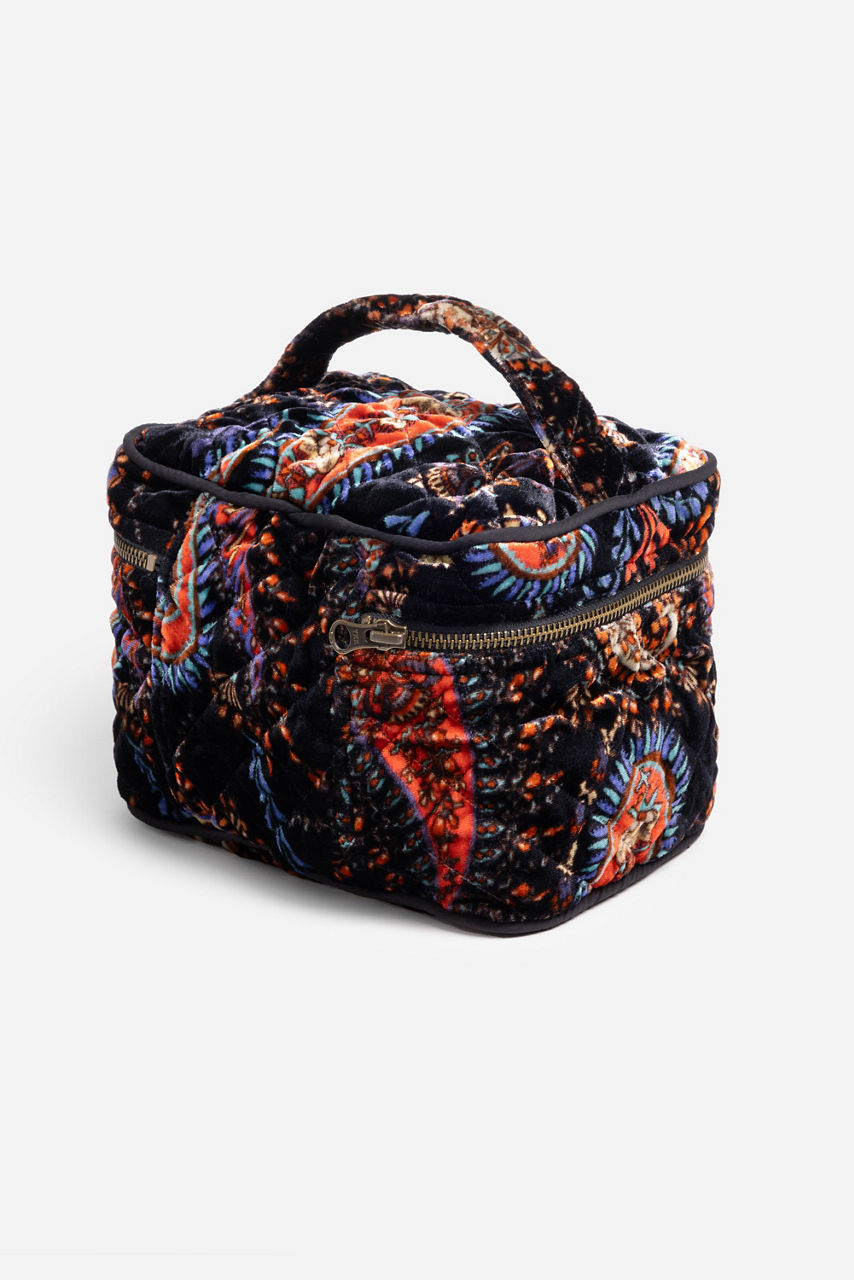 Perfectly sized for travel, the Sezana Makeup Bag offers a stylish way to store your makeup and accessories. Crafted from quilted velvet, this roomy bag features a zip-around opening and an interior pocket and includes a handle and a shoulder strap for easy carrying. Pack in your suitcase to have all of your necessities with you as you travel.