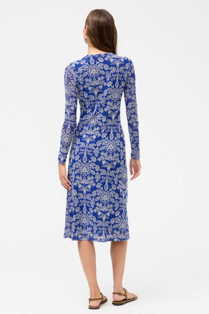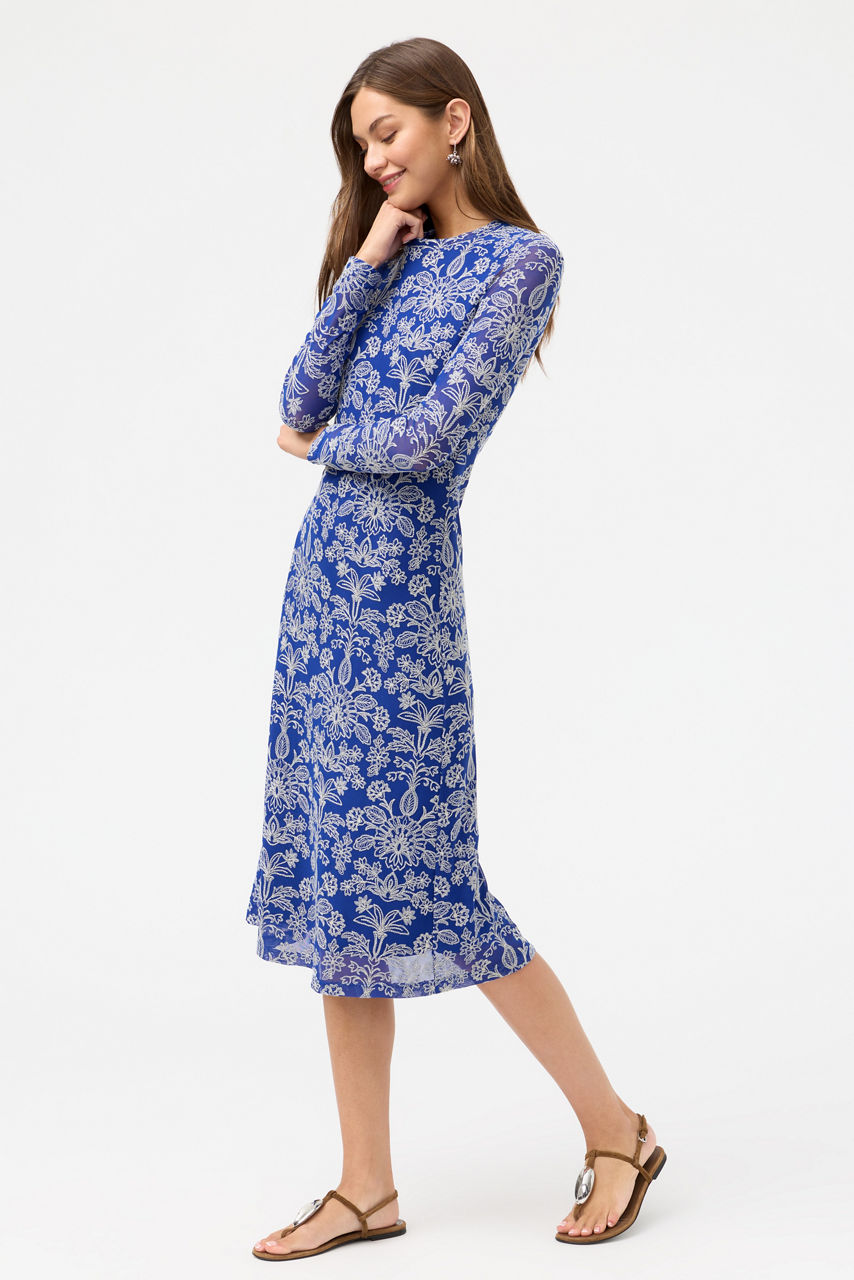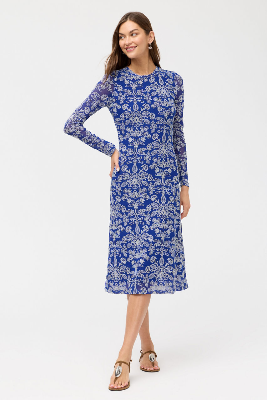 Beautifully crafted from a breathable mesh fabric, the Shelly Midi Mesh Dress is embellished with an ornate contrasting pattern. Designed with a crew neckline and long sleeves, this A- line dress offers a lined bodice at the front and back. Pair with heels and delicate glittering jewelry pieces for an elegant dinner date.
