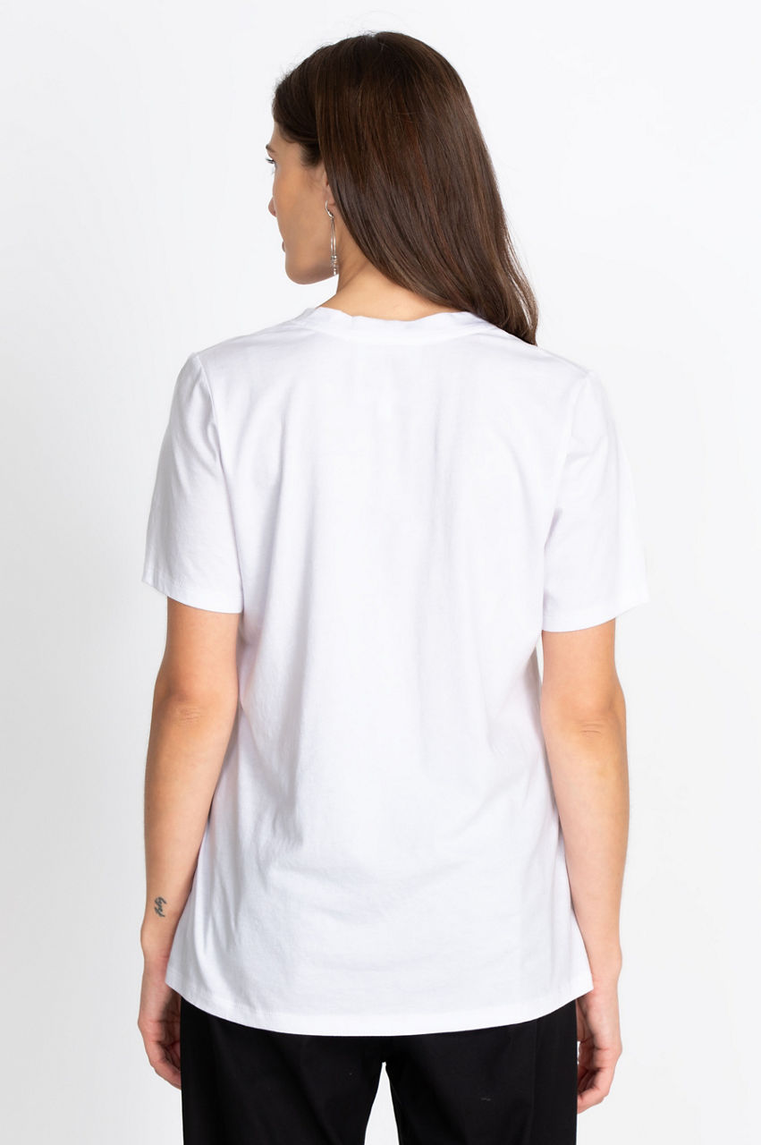 Forever a key wardrobe staple, the Short Sleeve V-Neck Layering Tee is a timeless building block for a plethora of year-round looks. This tee is cut in a regular fit and designed from pure cotton with a flattering V-neck and short sleeves. Layer this tee under a knitted cardigan with jeans during the cooler months and style with a midi skirt and sandals on those warm, sunlit days.