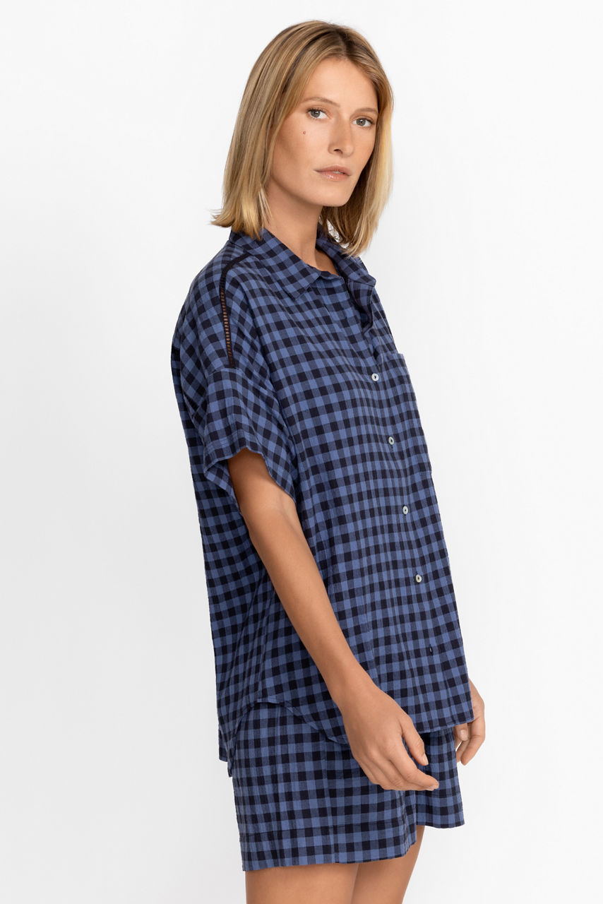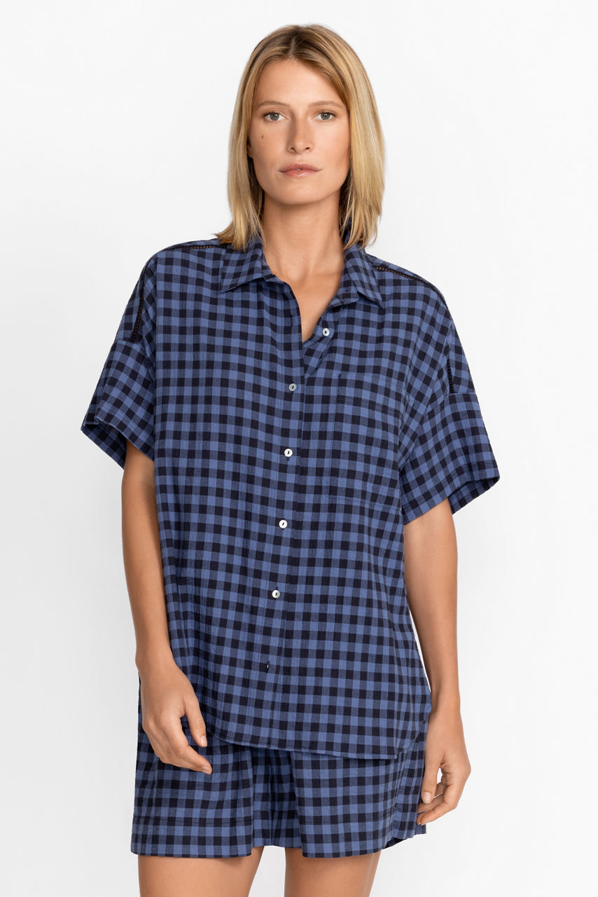 Creating a distinctive personal style, the Short Sleeve Chest Pocket Shirt adds vibrant color to your seasonal wardrobe. Crafted from 100% breathable cotton this button-front shirt features an open lapel and relaxed fit while offering a comfortable fashion-forward warm weather option. Pair with structured chinos and stylish flats for a complete ensemble.