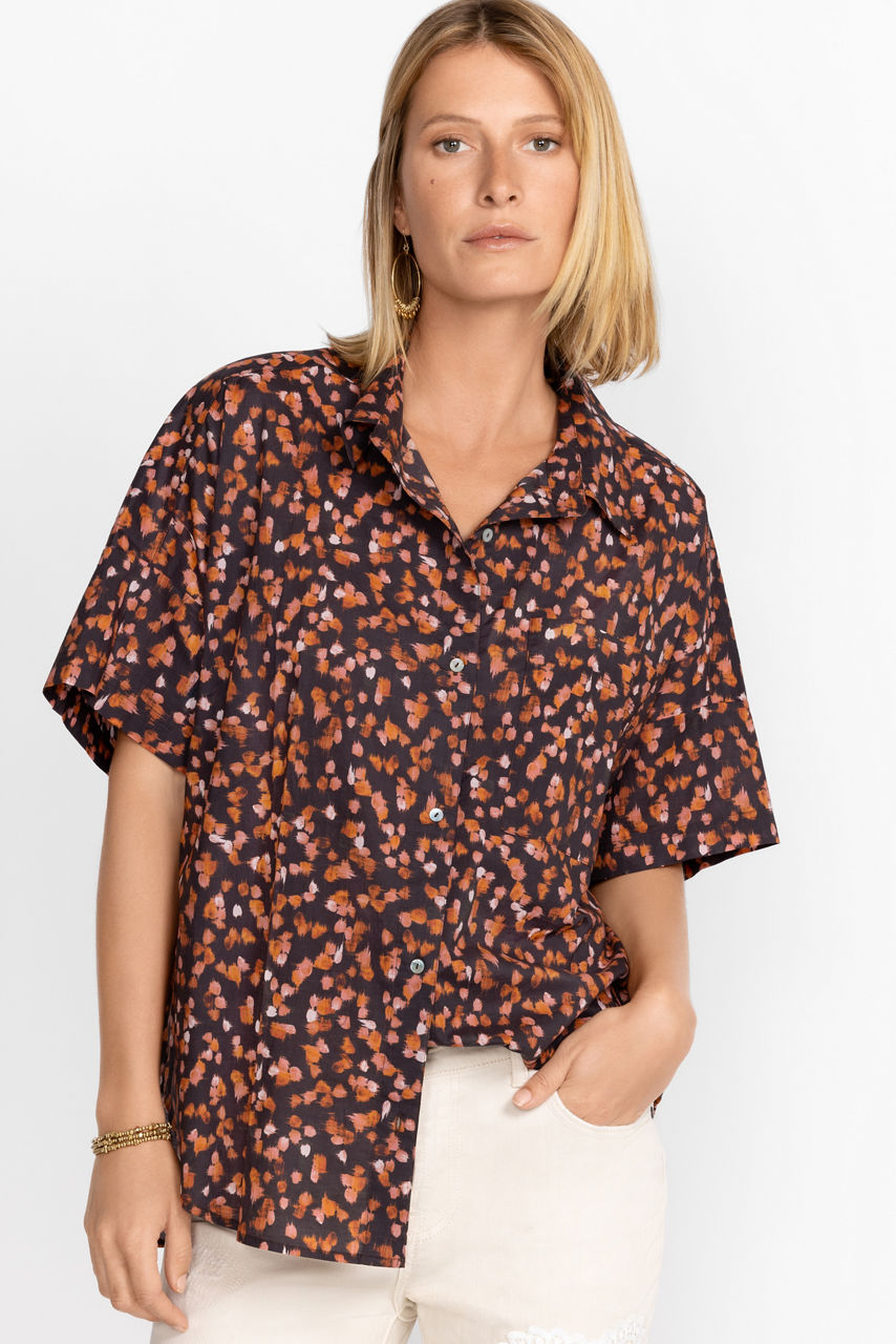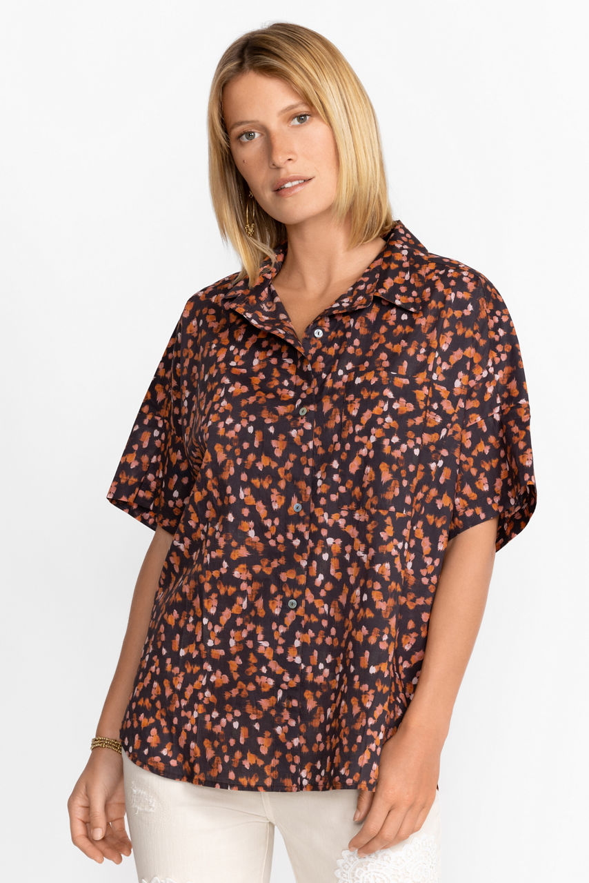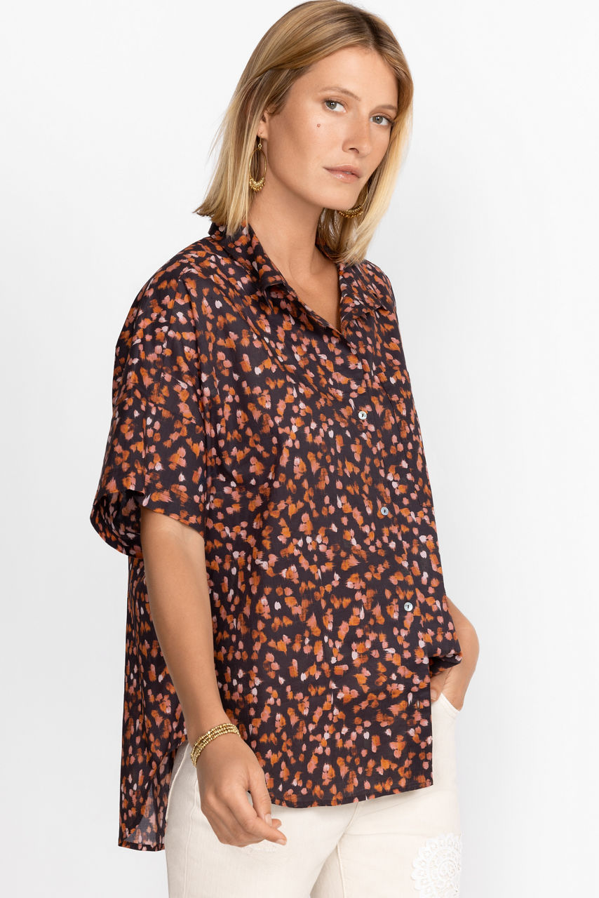 Creating a distinctive personal style, the Short Sleeve Chest Pocket Shirt adds vibrant color to your seasonal wardrobe. Crafted from 100% breathable cotton this button-front shirt features an open lapel and relaxed fit while offering a comfortable fashion-forward warm weather option. Pair with structured chinos and stylish flats for a complete ensemble.