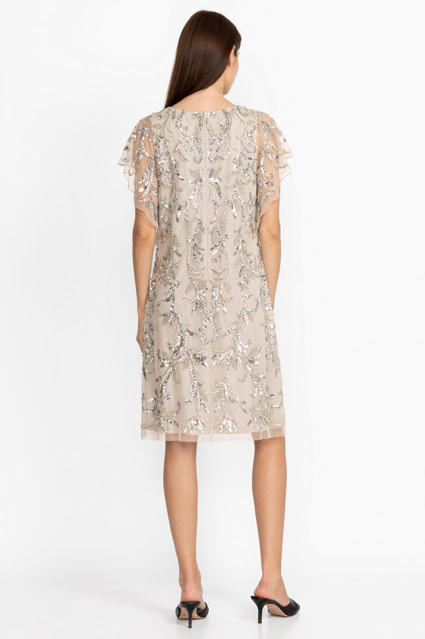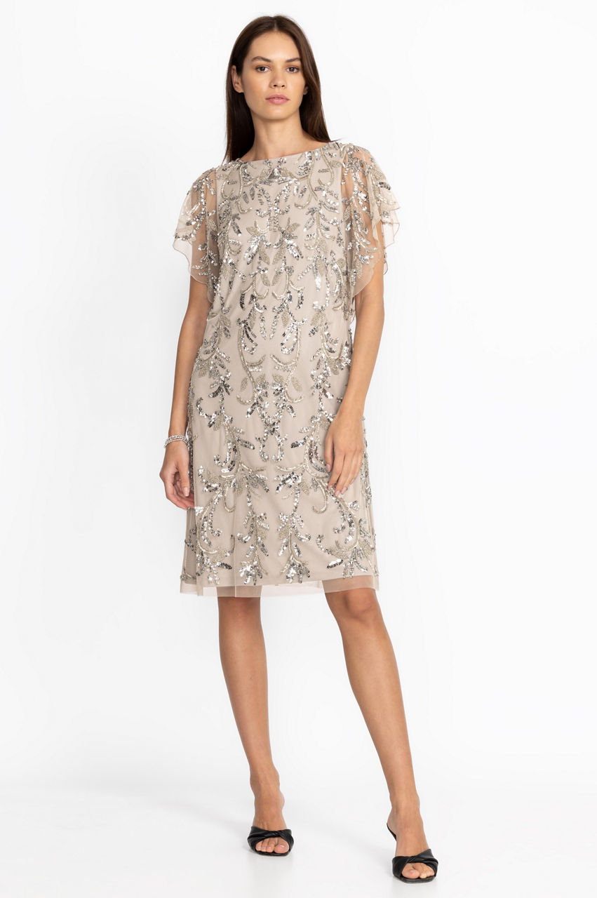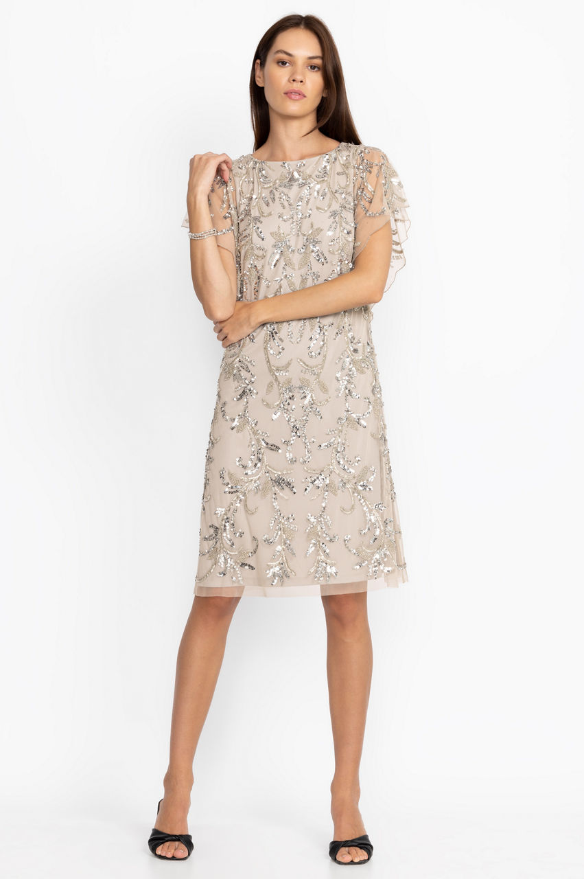 Delightfully dazzling, the Silver Sequin Cocktail Dress adds a touch of sparkle to any special event on your calendar. Featuring a relaxed A-line cut and a fluttering cap sleeve, the delicate floral sequined applique creates a chic silhouette that is sure to turn heads. Pair with strappy heels and sparkling jewelry for an evening out.