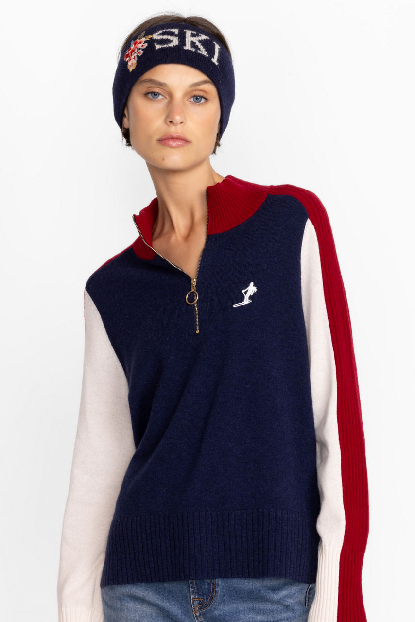 Introduce a chic touch to the slopes with the Apres Ski Head Warmer. Spun from a sumptuous and insulating wool cashmere blend, this head warmer is elevated by a colorful floral embroidered knit across the front. Pair this head warmer with a stylish all-in-one and sunglasses for a chic apres-ski ensemble.
