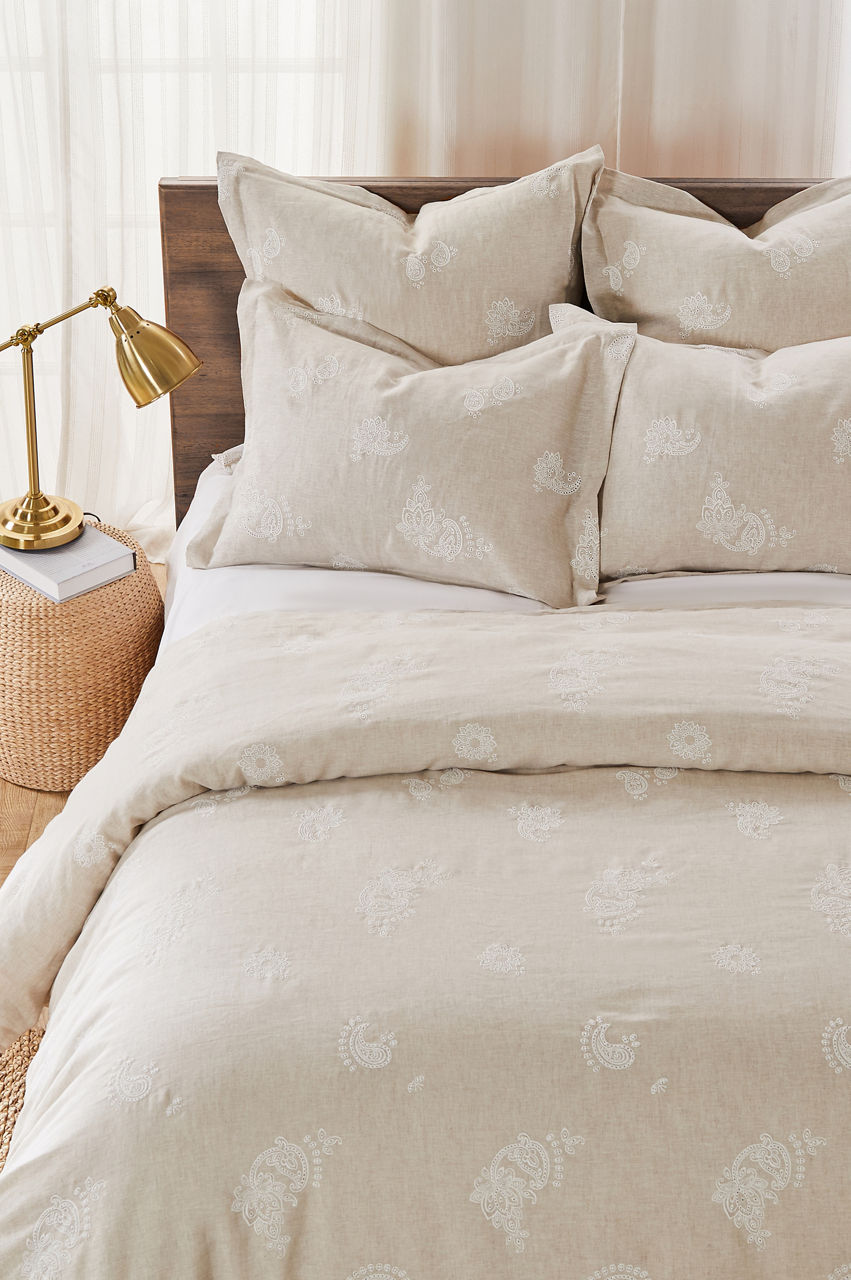 Designed from durable and comfortable linen, the Skylar Queen Duvet is underscored with a subtle prairie-like charm. Designed in a versatile color scheme, this queen-sized duvet is characterized by a dainty selection of florals in tonal colors. Pair with the matching shams for a coordinated bedroom look.