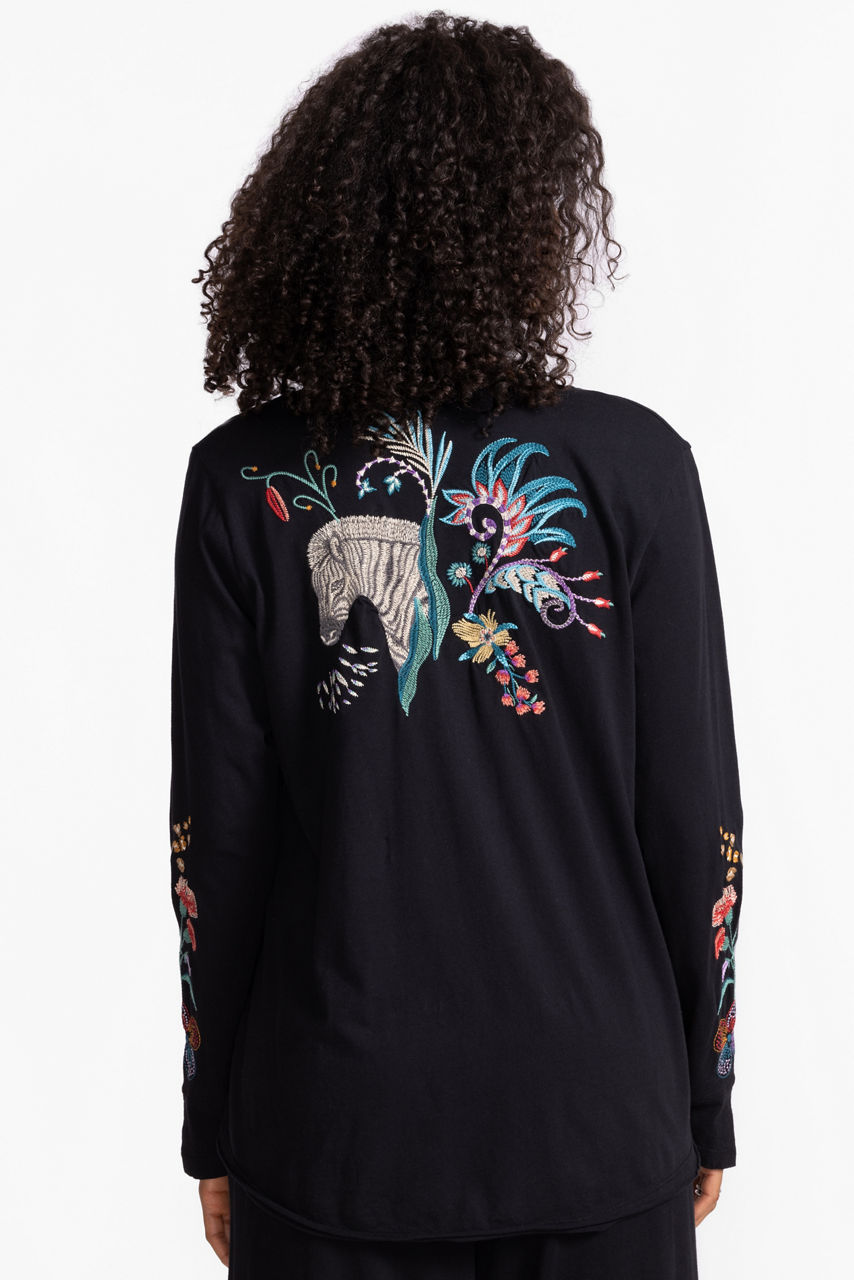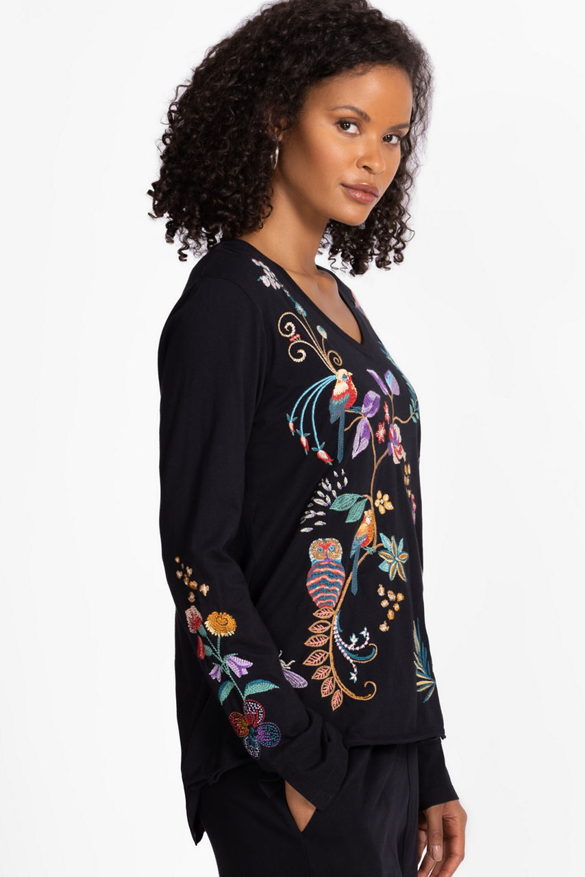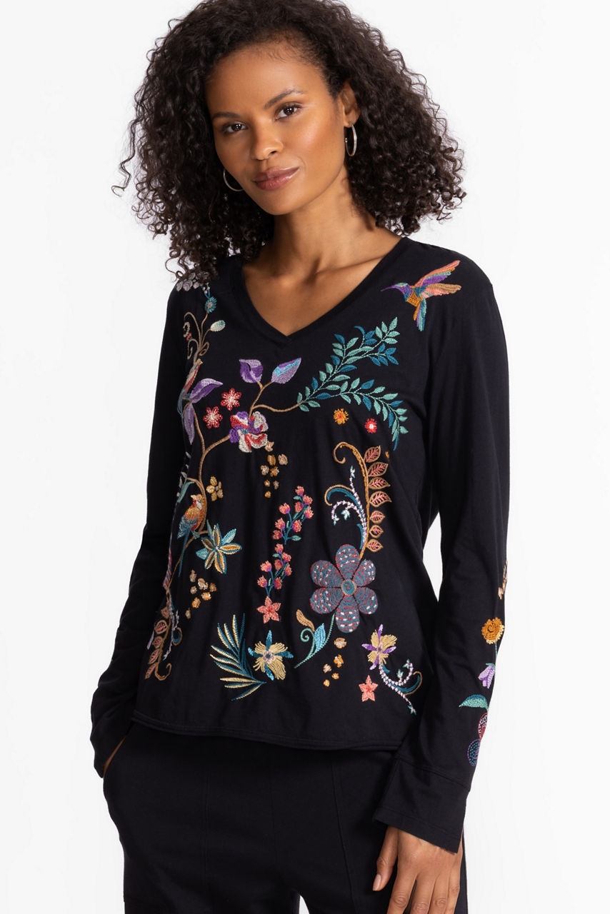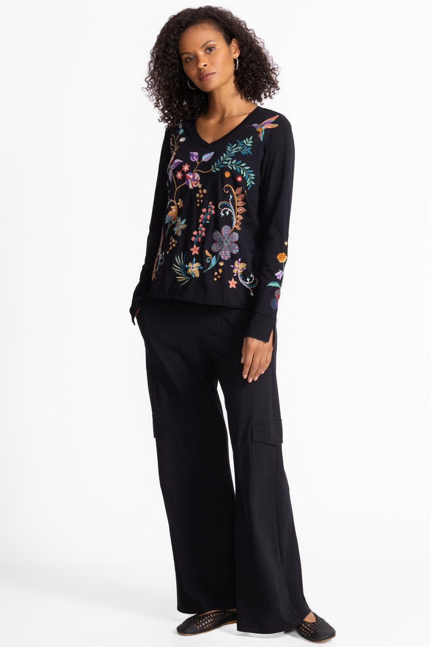 Crafted from breathable 100% cotton, the Belina Slit Sleeve Tee offers a fresh take on a classic wardrobe staple. Featuring a V-neckline and split cuffs for a tailored look, this lightweight tee is finished with bold embroidered detailing in vibrant colors. Pair with linen shorts and casual sandals for an elevated weekend combination.