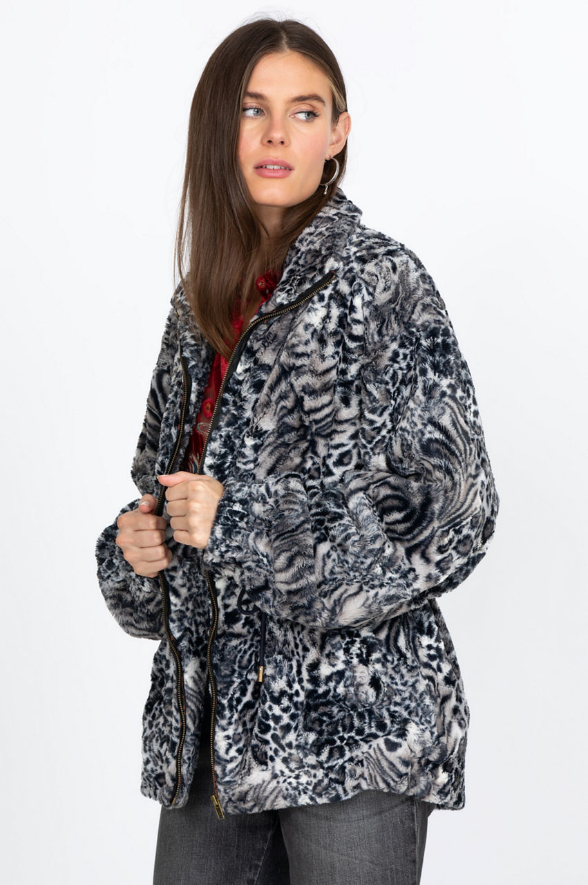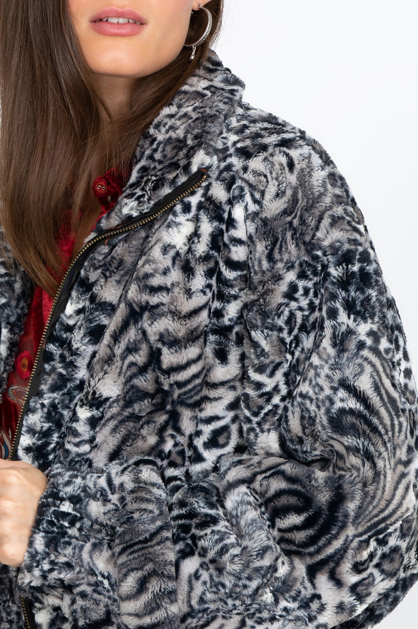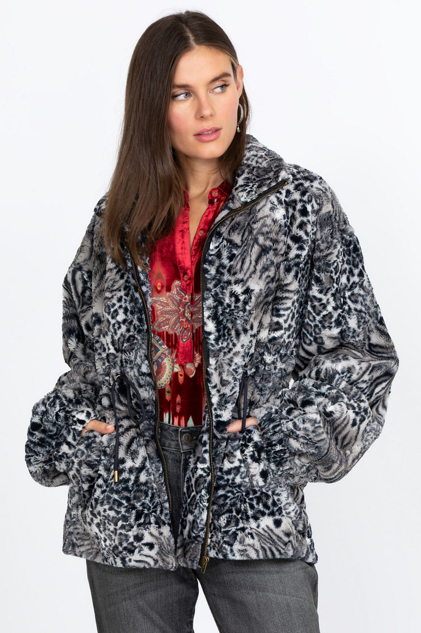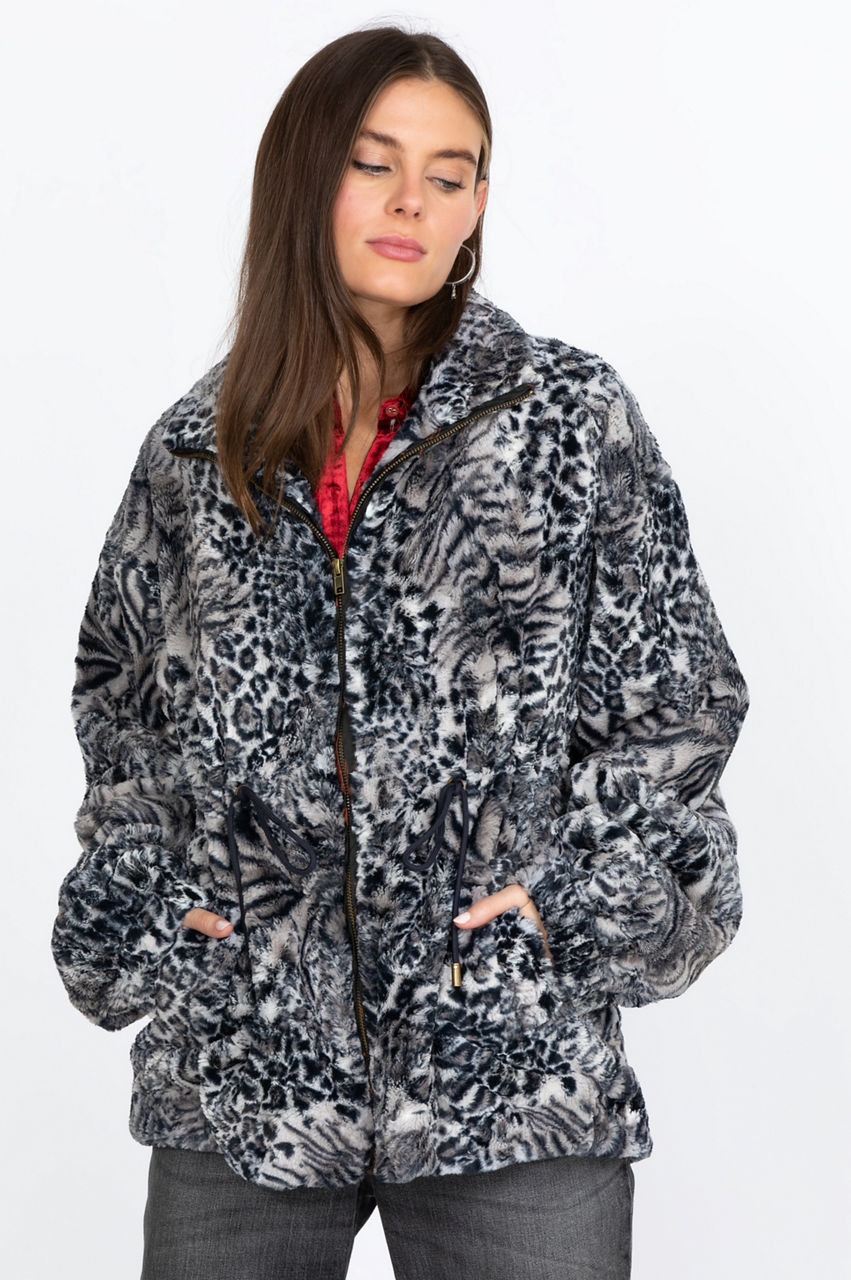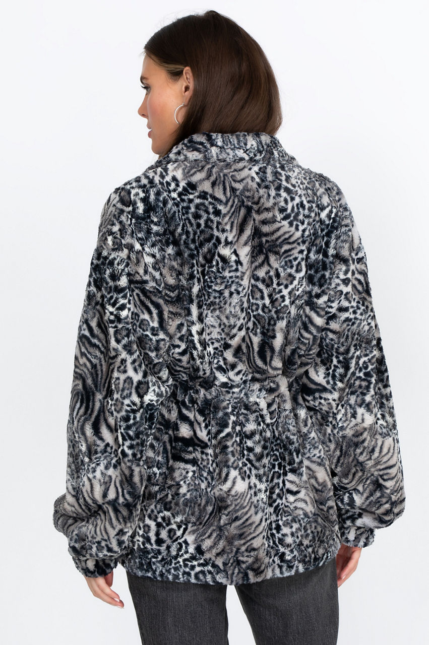 Smoke Leopard Faux Fur Drawstring Jacket