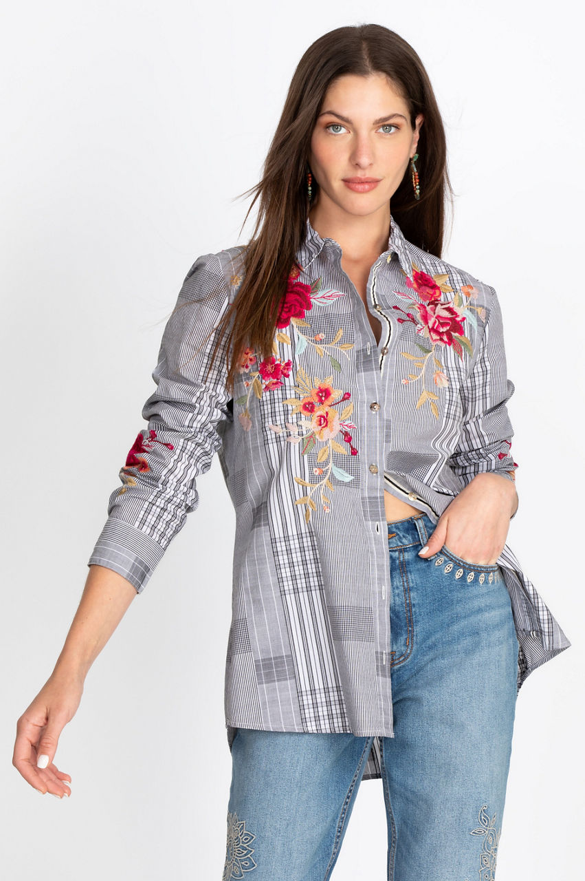 Make this season even brighter with our Sonya Button Up Shirt. This gorgeous top features brilliant embroidery, a lovely silhouette and a dazzling design to give you the perfect top for any occasion. Pair this blouse with some denim jeans, an embroidered belt, open-toed heels and some elegant layered jewelry to pull together your next favorite boho ensemble.