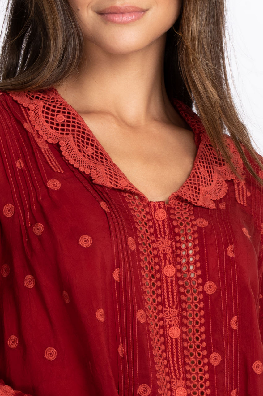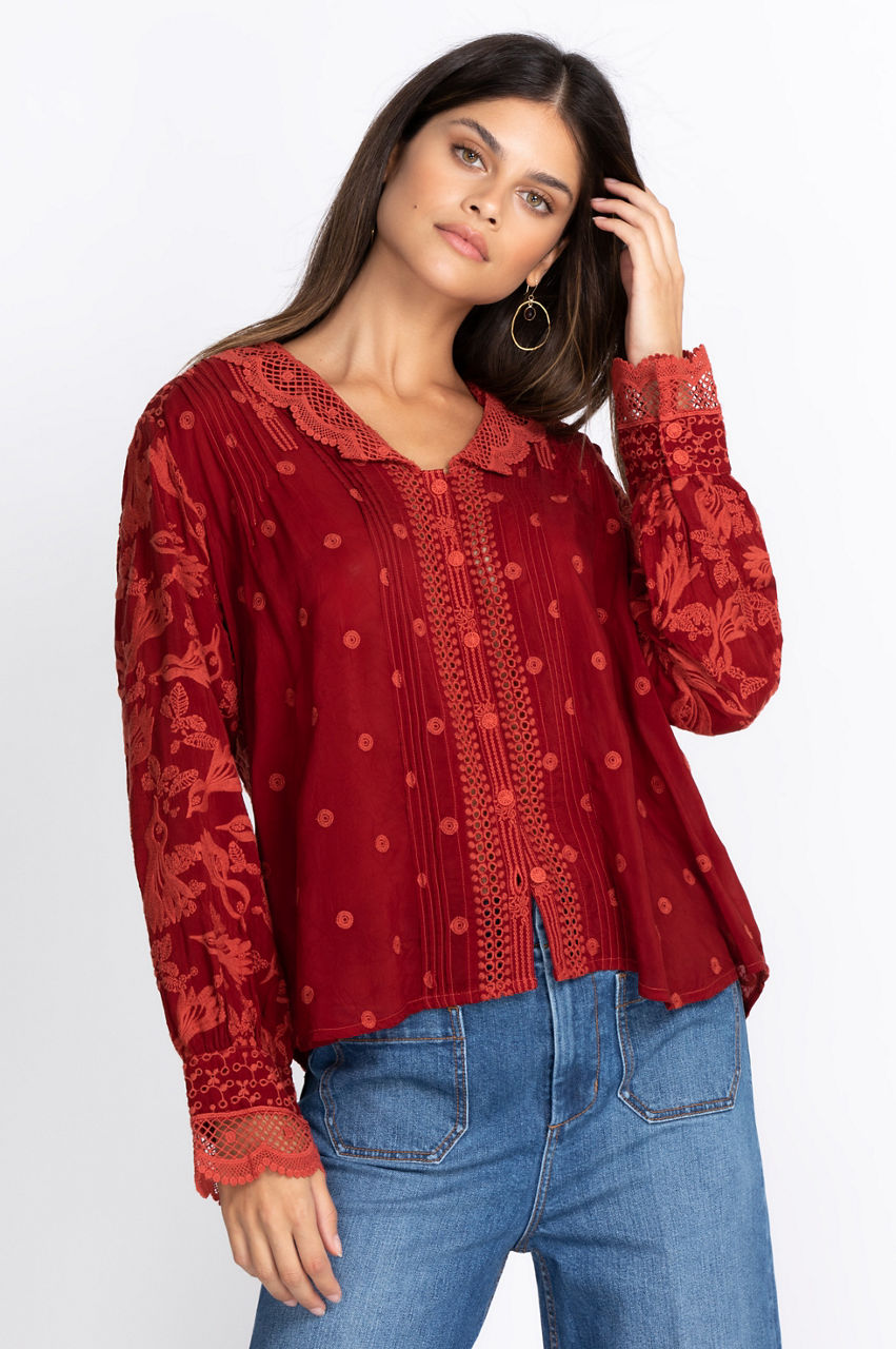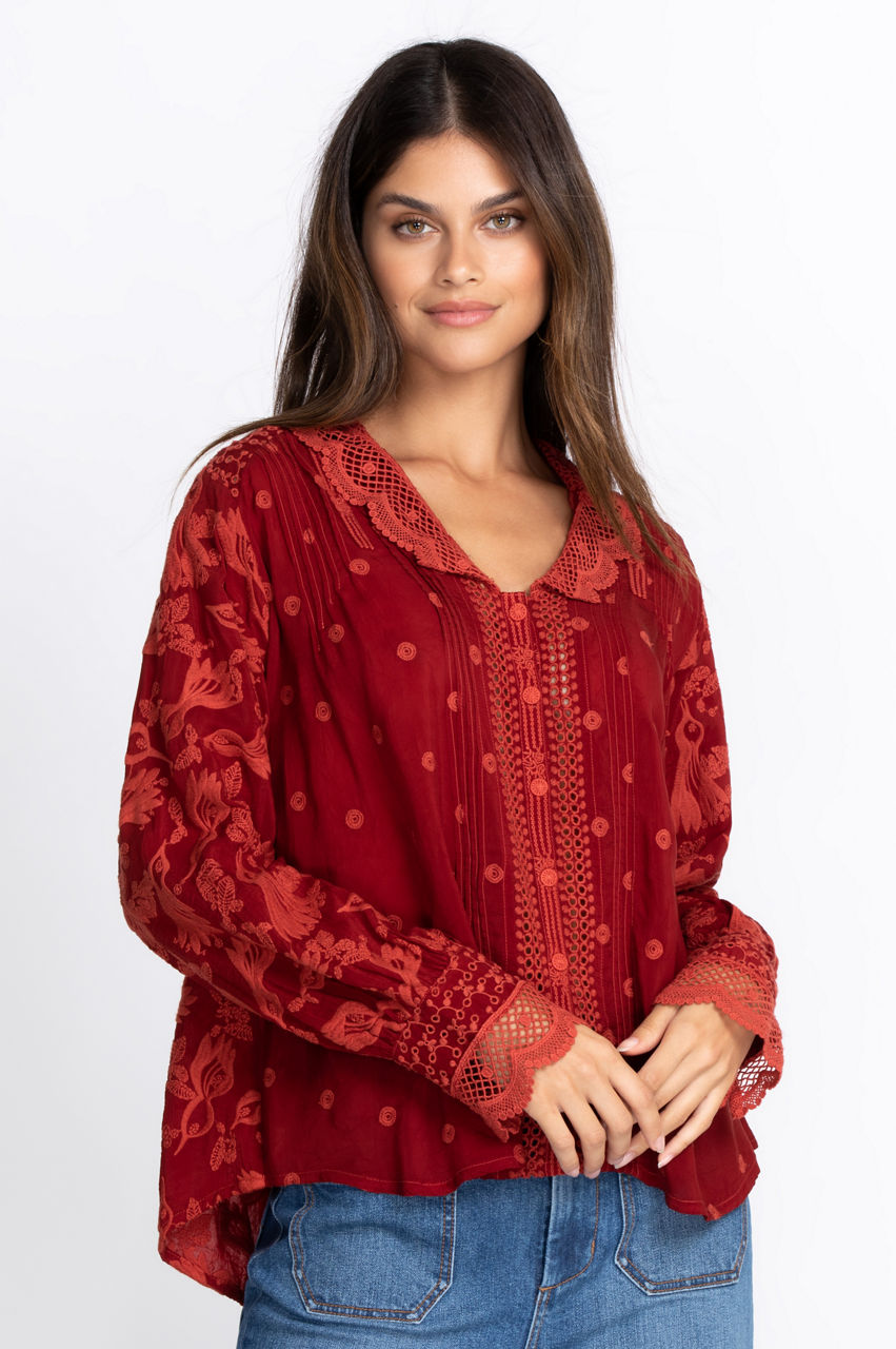 Our Sparrows Iliana Top is sure to be a favorite this season and next with its outstanding embroidery, specialty fabrics, and Bohemian accents. This top is perfect for days exploring the town with your friends or nights celebrating your loved ones. Pair it with your favorite skinny jeans and wedges to pull together a charming boho-inspired look.