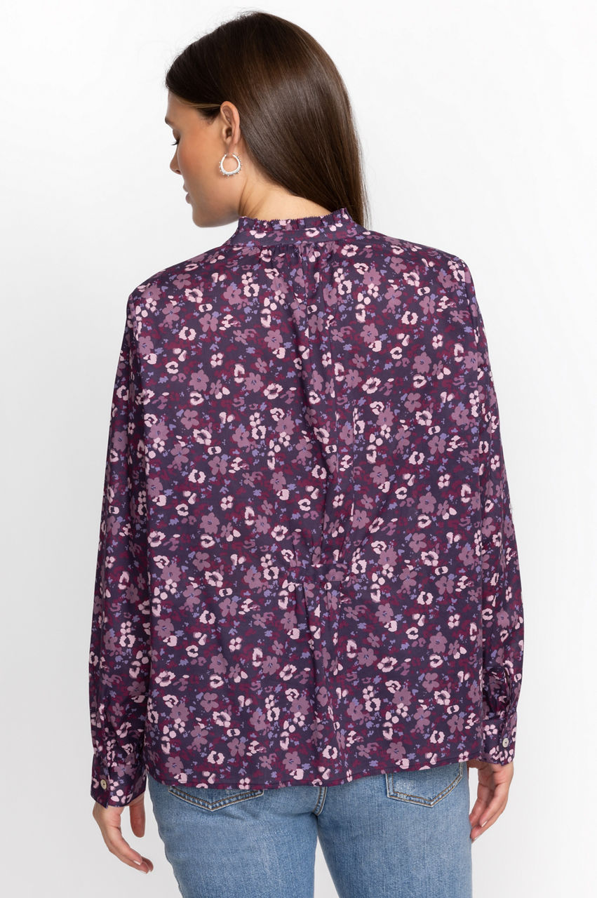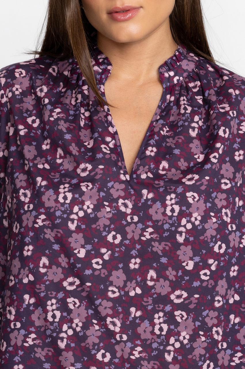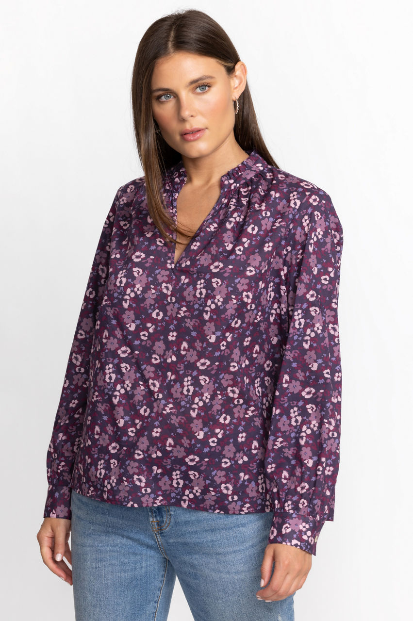 Fragrant florals dominate the romantic Split Ruffle Neck Blouse. Dreamed up in a purple color scheme, this blouse is designed from pure cotton and features long sleeves, a captivating floral pattern, and a high ruffle neck for an opulent twist. Opt for a casual ensemble by pairing with denim or switch to tailored pants for a stylish evening look.