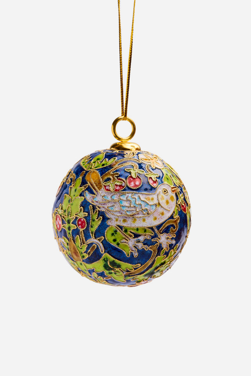 Intricately designed with colorful tile detailing housed in a glittering gold-tone frame, the Cloisonne Ornament adds a touch of elegance to your holiday decor. Featuring an ornate depiction of a beautiful bird and vibrant strawberries suspended from a gold-tone cord, this ornament is a perfect conversation piece. Add to your holiday tree or hang near a window to reflect the daytime sun.