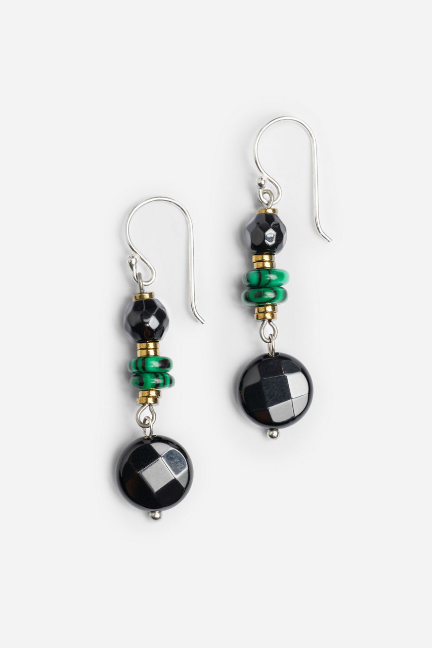 - Materials: Hematite, chalcedony, calcite, 925 sterling silver hooks