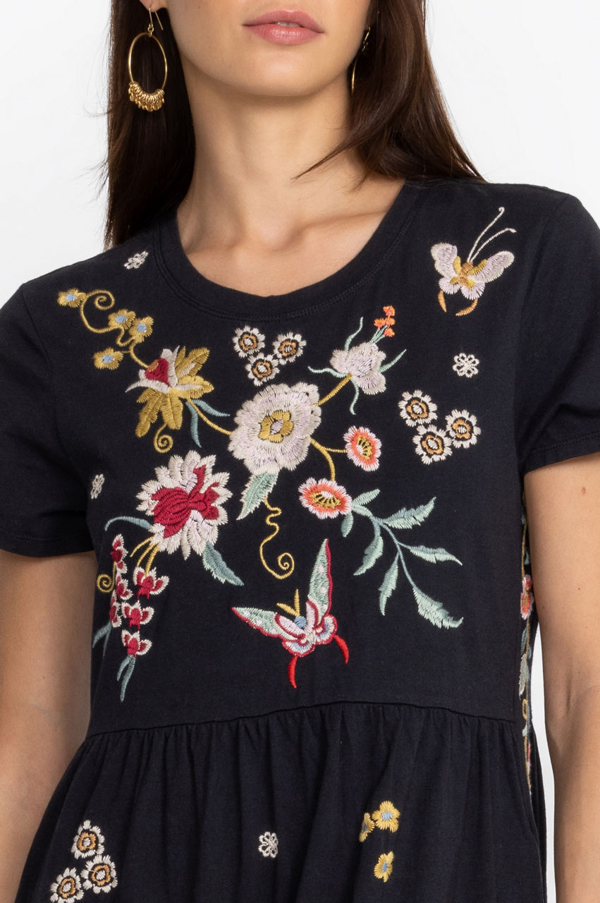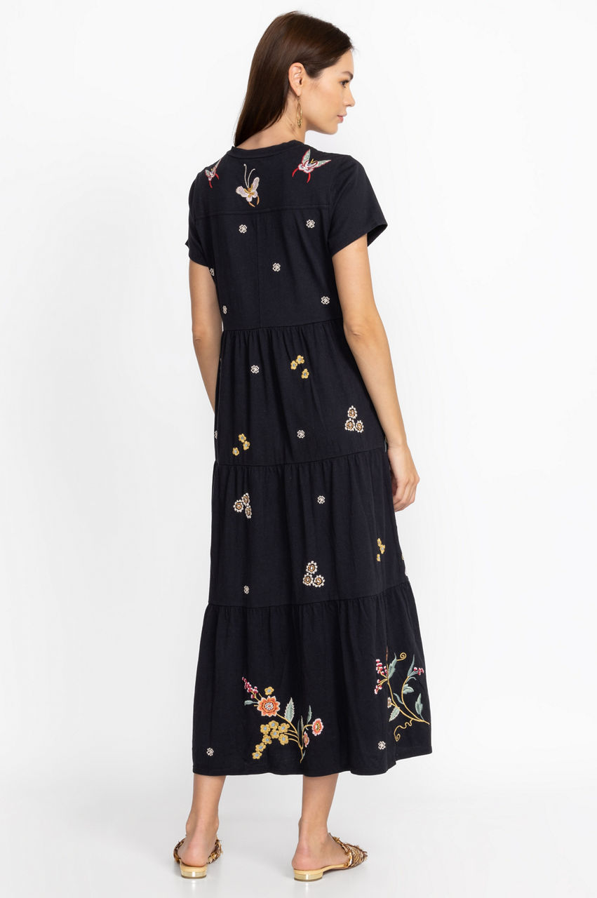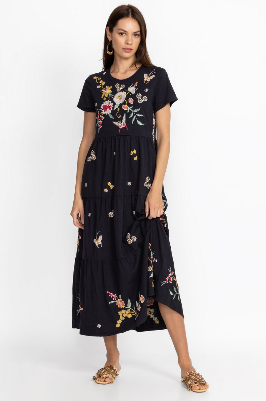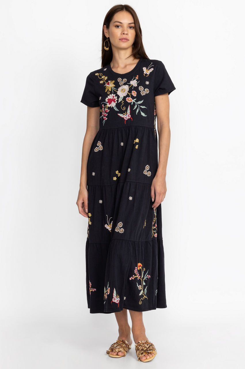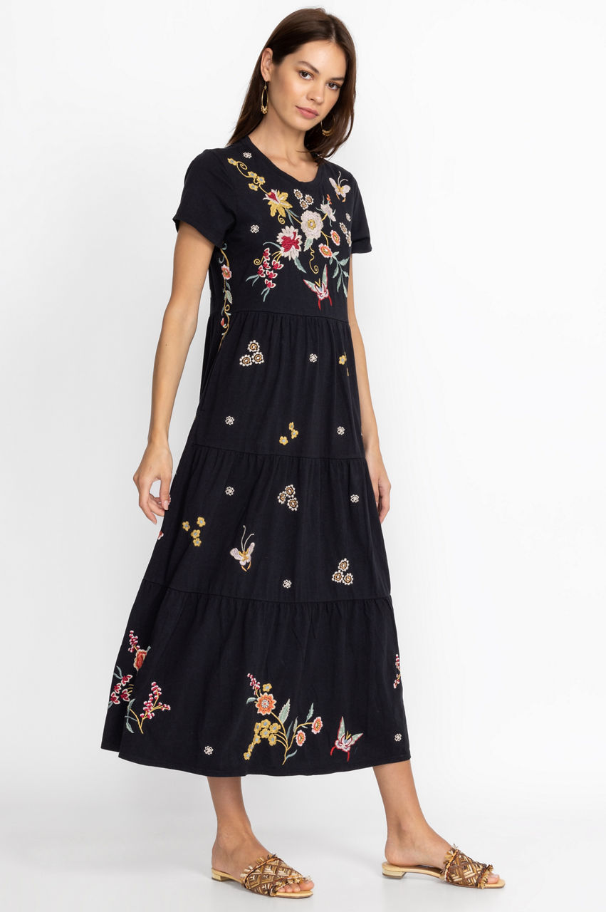 With brilliant embroidery featured on a vibrant background, the Suki Cap Sleeve Knit Dress is perfect for the season. Offering a delicate cap sleeve, straight bodice, and attractively tiered skirt, this dress is a wardrobe addition that works for any occasion. Pair with flat sandals and colorful jewelry for a fresh look.