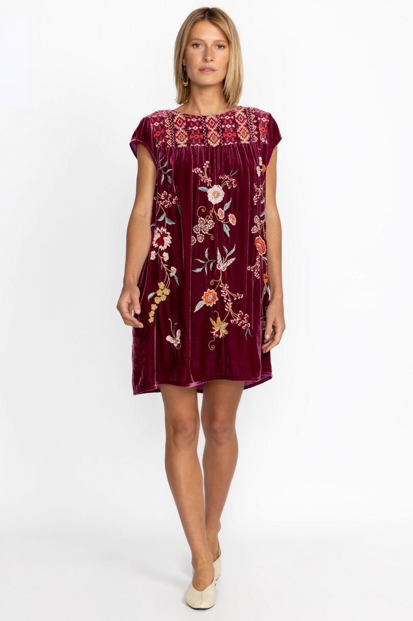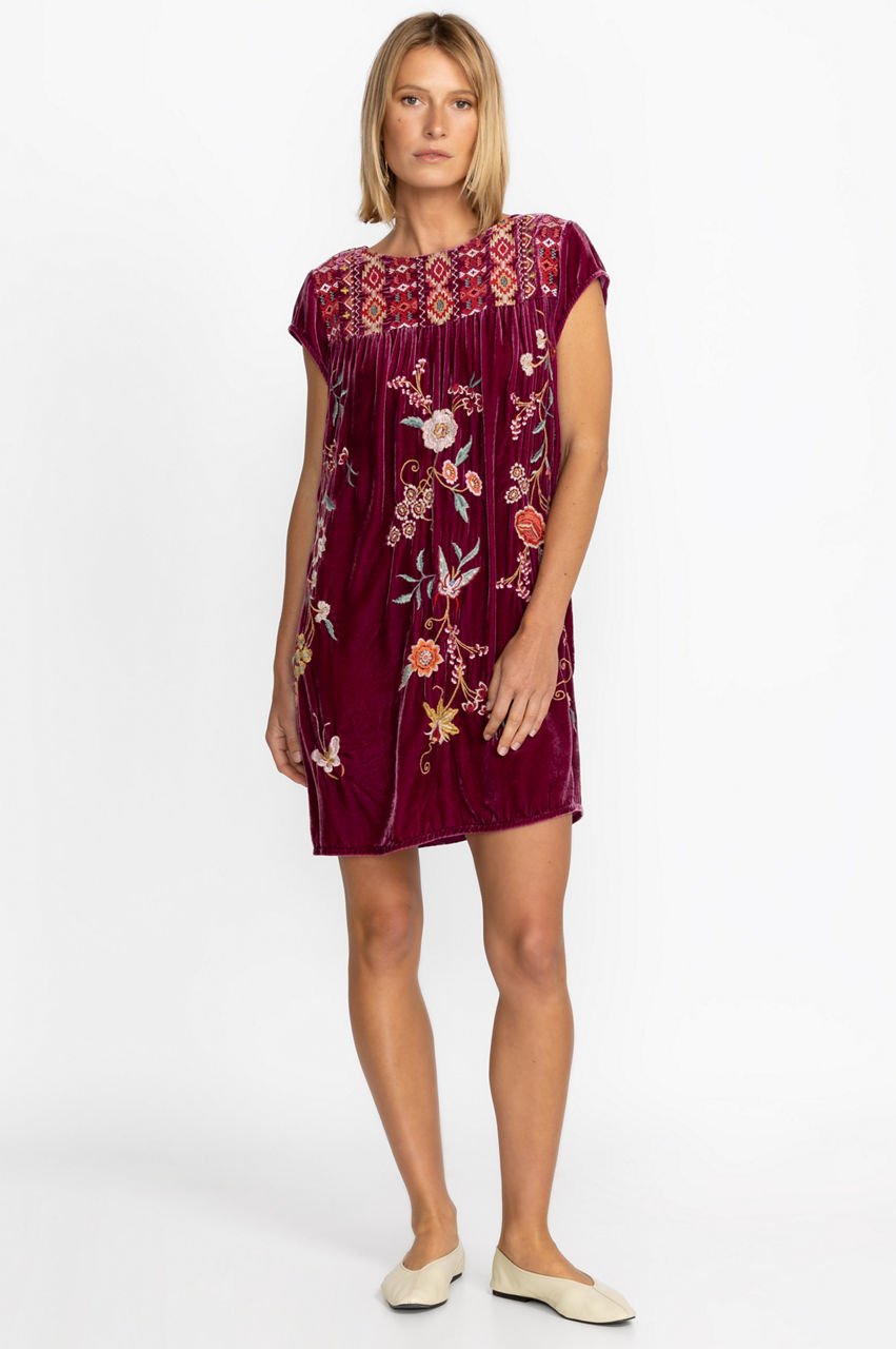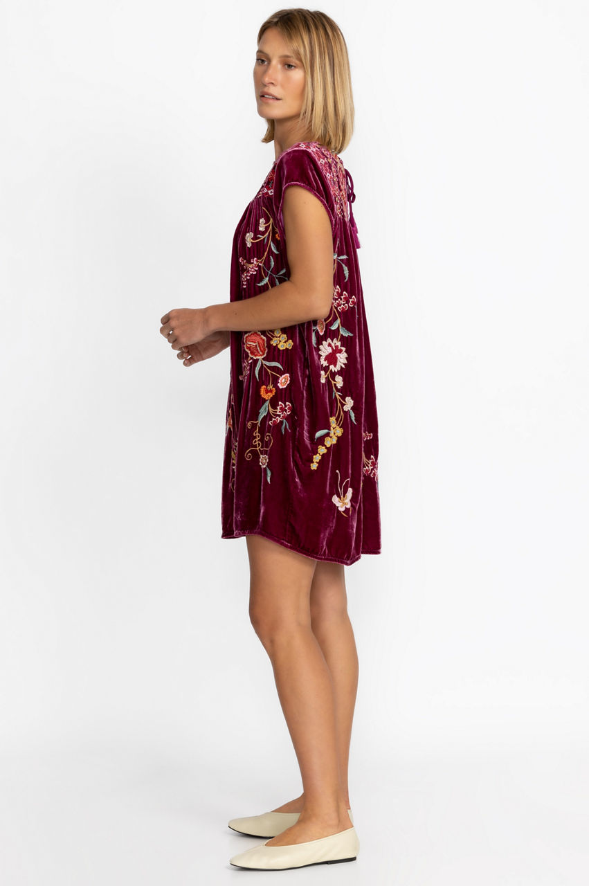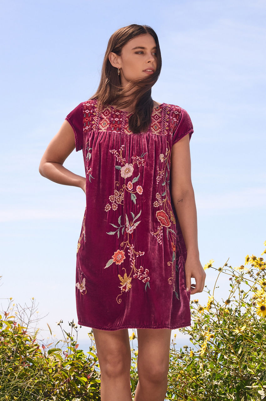 Spend the day soaking up the sun in the Suki Petal Sleeve Tunic Dress. Featuring a tie-front neckline and an A-line fit through the skirt, this dress is expertly embellished with colorful placement embroidery and a ruffled cap sleeves. Add a wicker beach bag and dramatic sunglasses for sunny days.