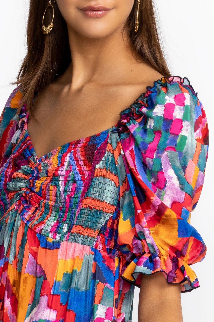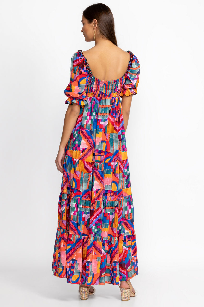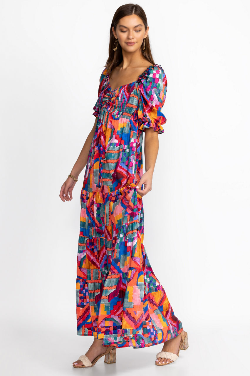 Saturated in eye-catching color, the Summer Daydream Silk Maxi Dress captures the essence of the sunny season. Featuring an attractive sweetheart neckline and feminine puffed sleeves, this silk tiered maxi dress is a breezy silhouette for warm days. Pair with sandals and delicate jewelry for a polished look.