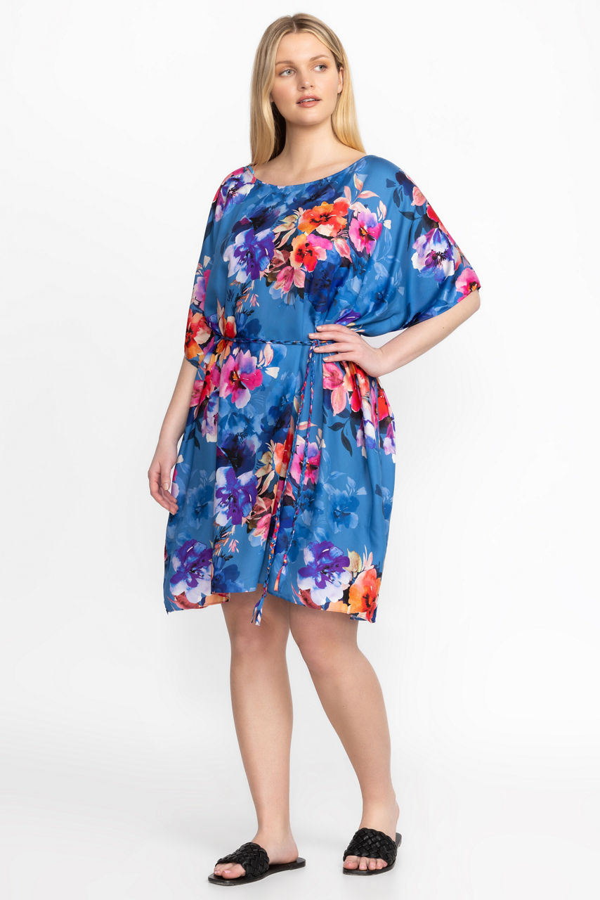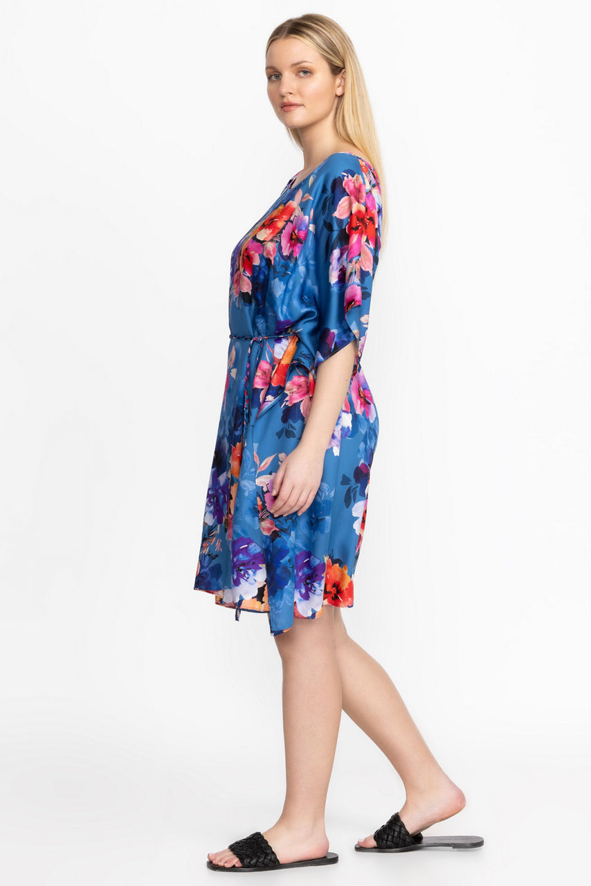 Crafted from a luxurious silk blend and embellished with vibrant floral blooms, the Summer Days Dress is light and airy. Featuring a boatneck and flowing batwing sleeves, this dress is cinched at the waist and flows gently into a decadent A-line skirt. Accessorize with a bold pendant necklace and colorful flats for a vacation-ready look.